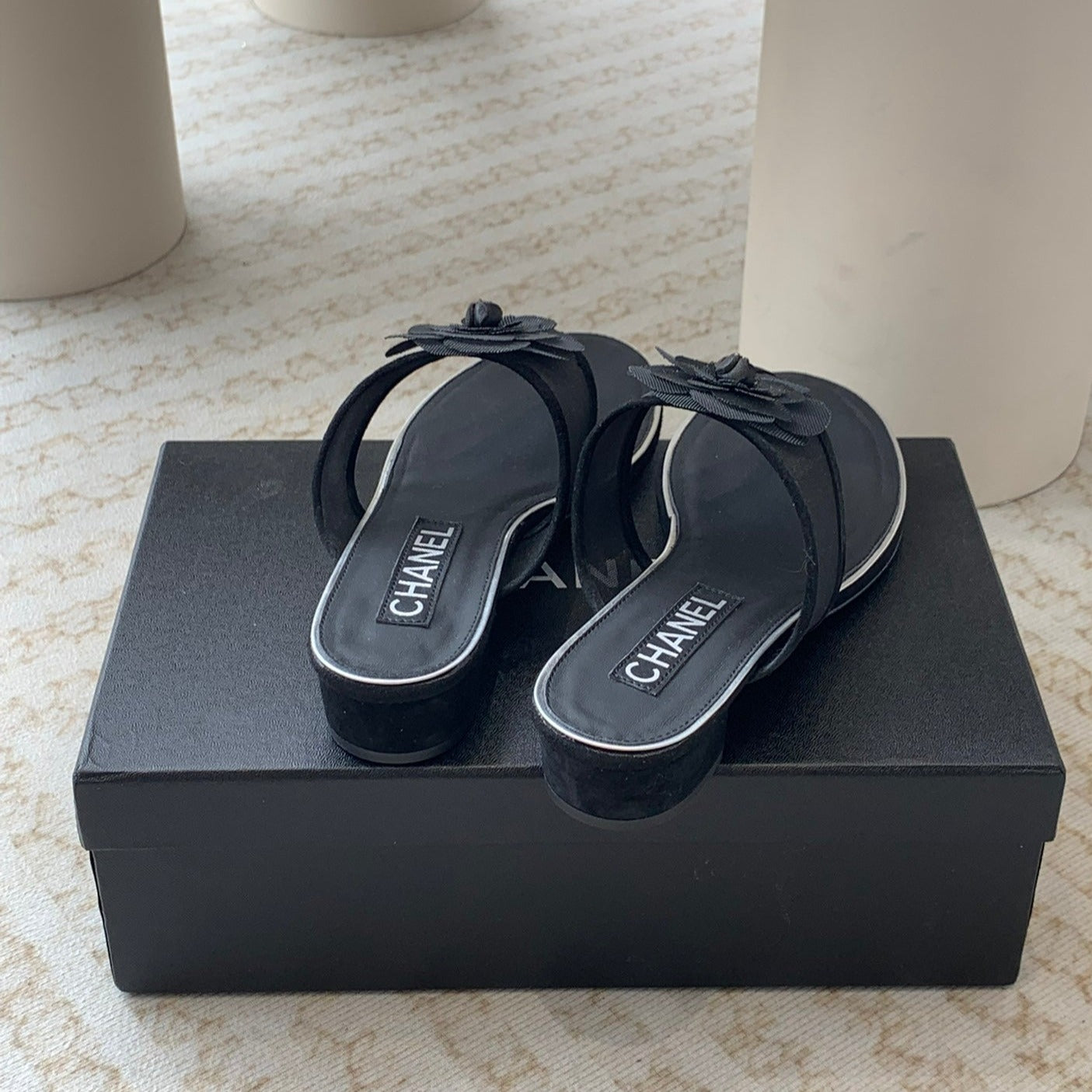 camellia thong sandal black lace