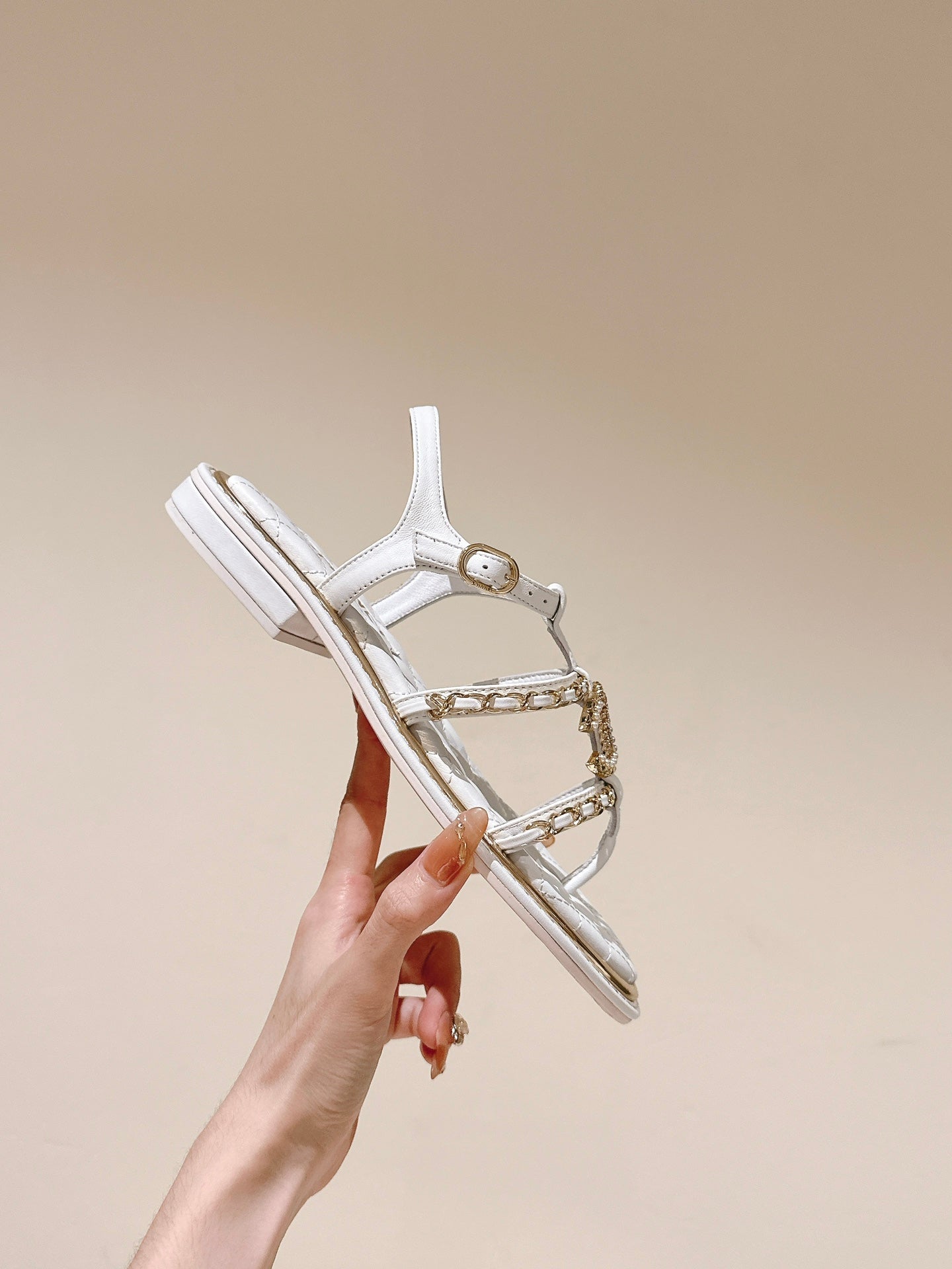 sandal leather strap white quilted calfskin