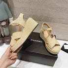 Wedge Open-Toe High Heel Sandals Beige Cream Sheepskin