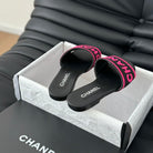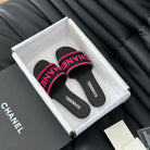 Woven Embroidered Letter Slippers Black Pink