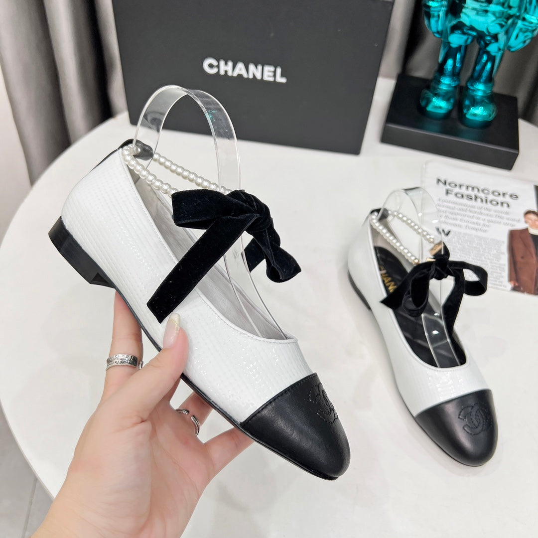 CC Ballet Flats 10mm Beige Black Quilted Lambskin
