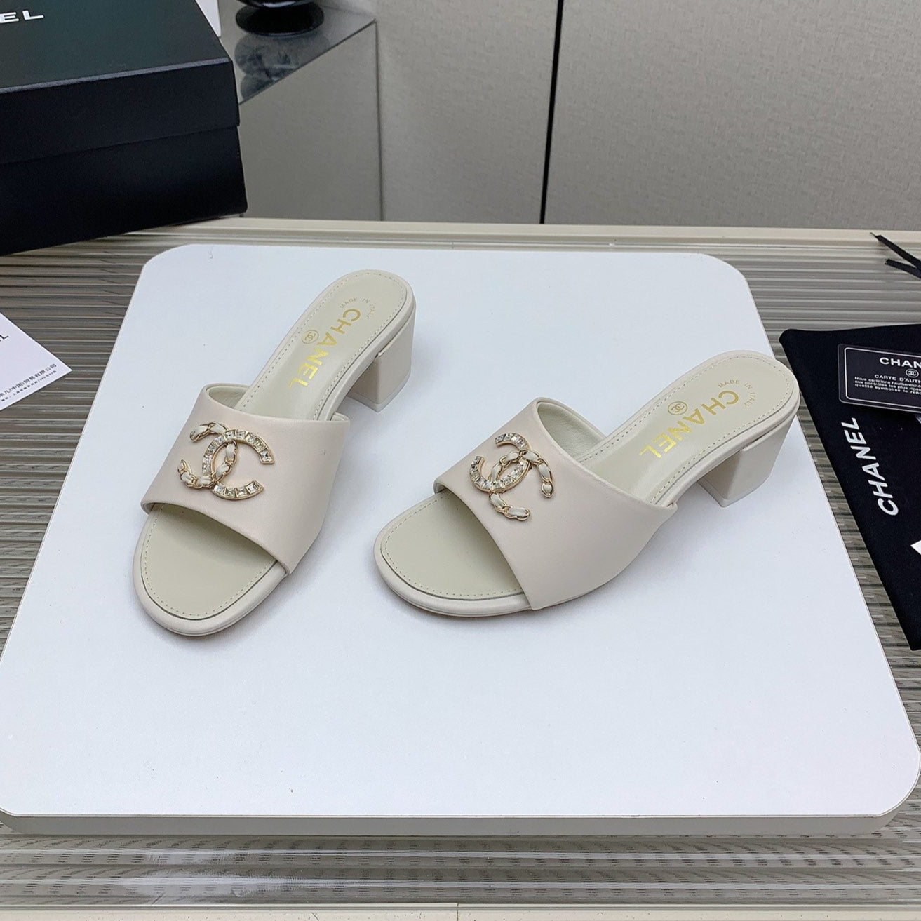 CC Slippers In White Calfskin 149748