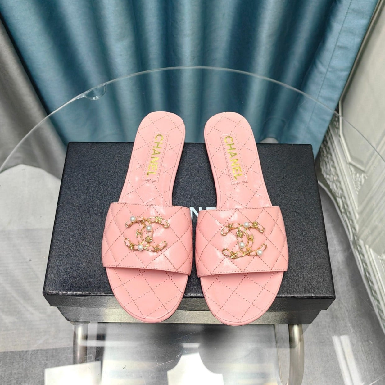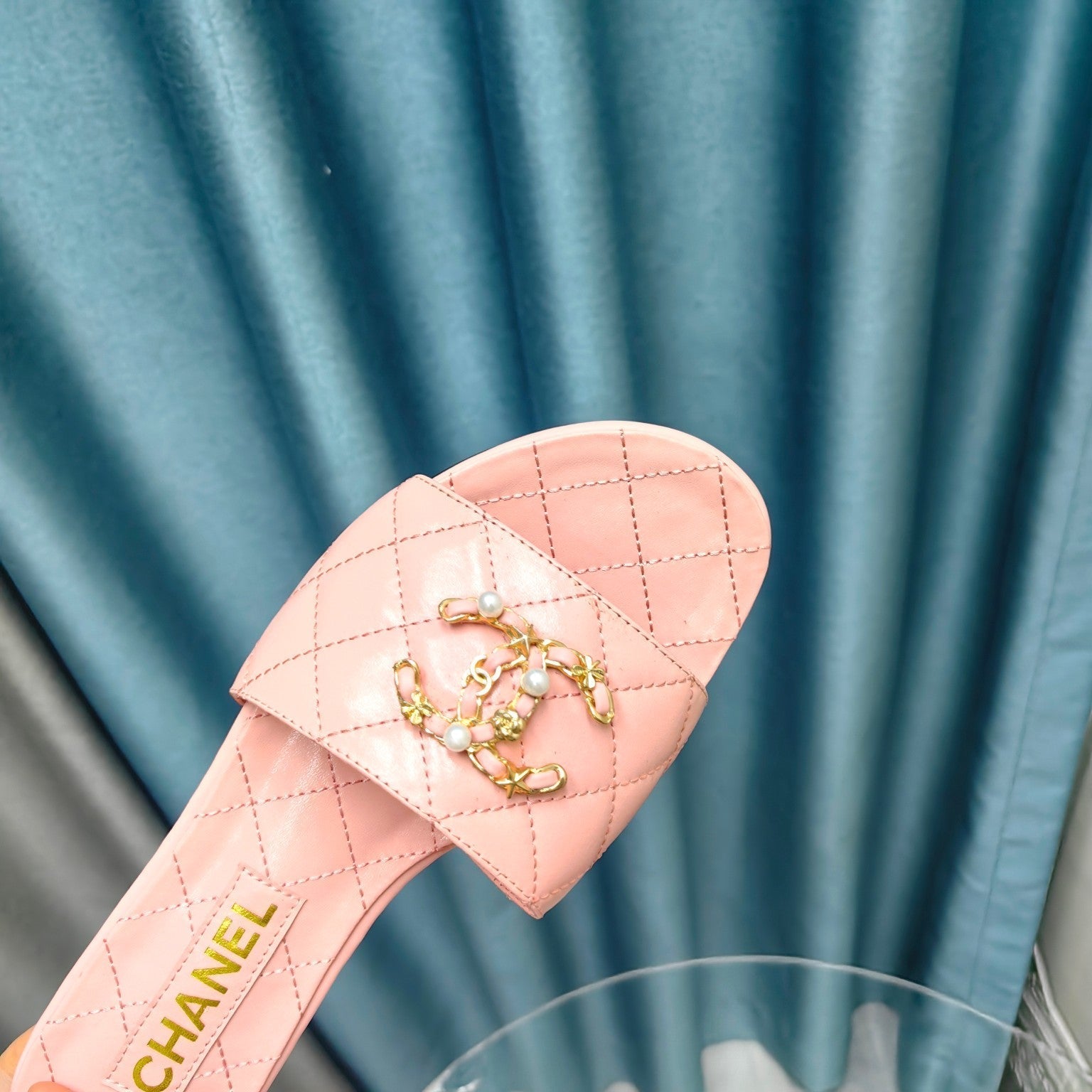 Double C Classic One-Strap Sandals White Pink Lambskin