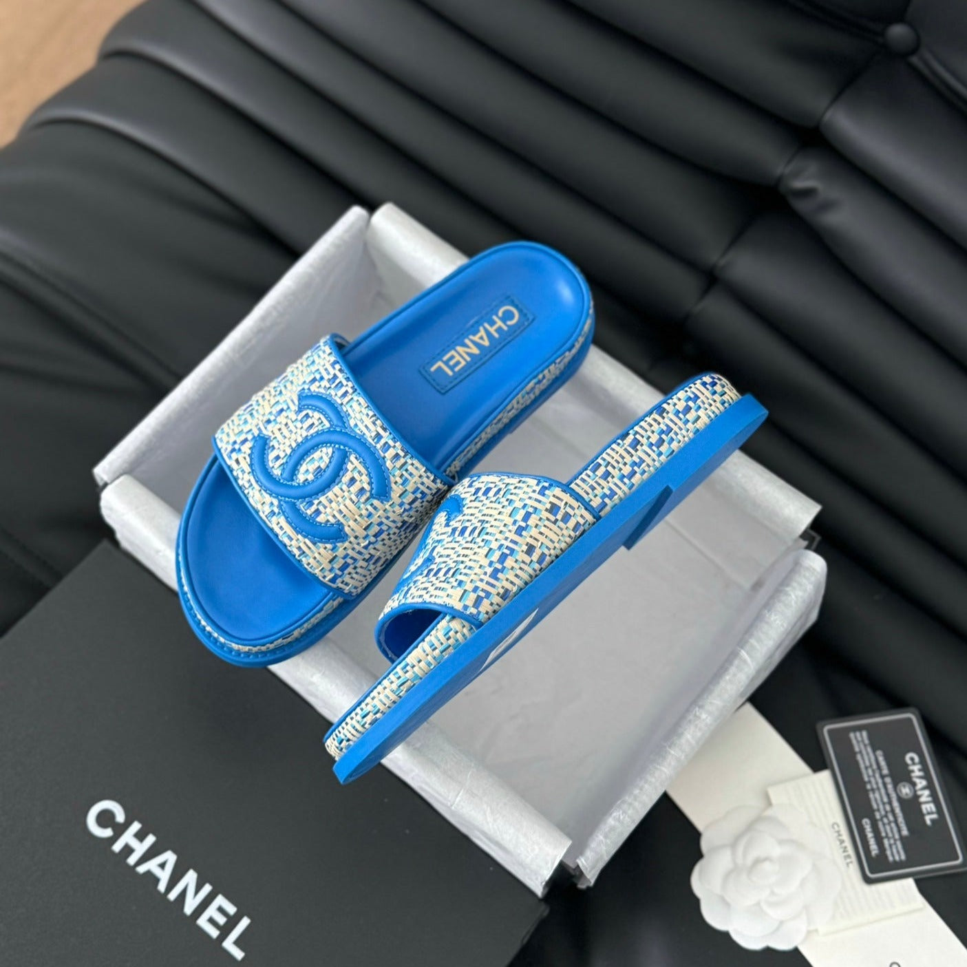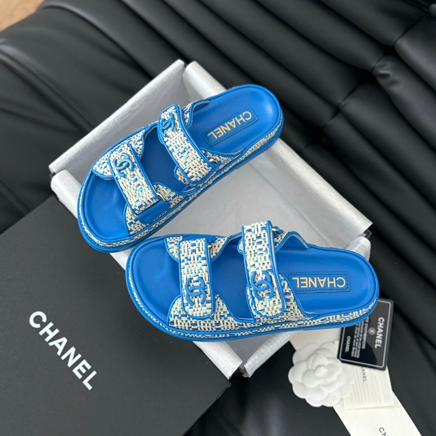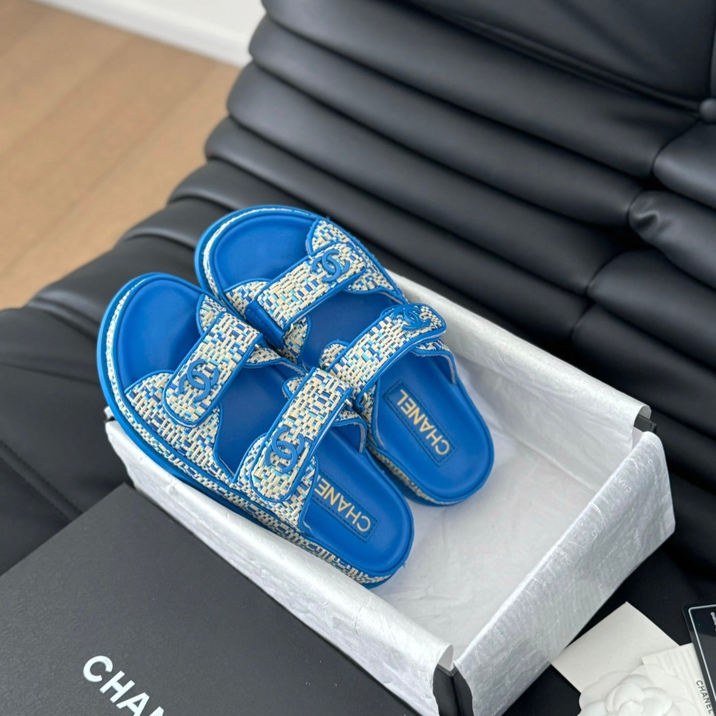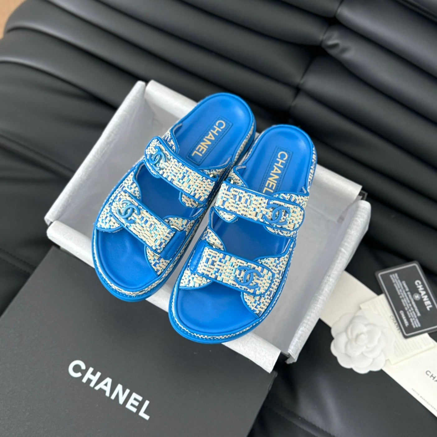 Double C Platform Biscuit Shoes Fabric Navy Blue
