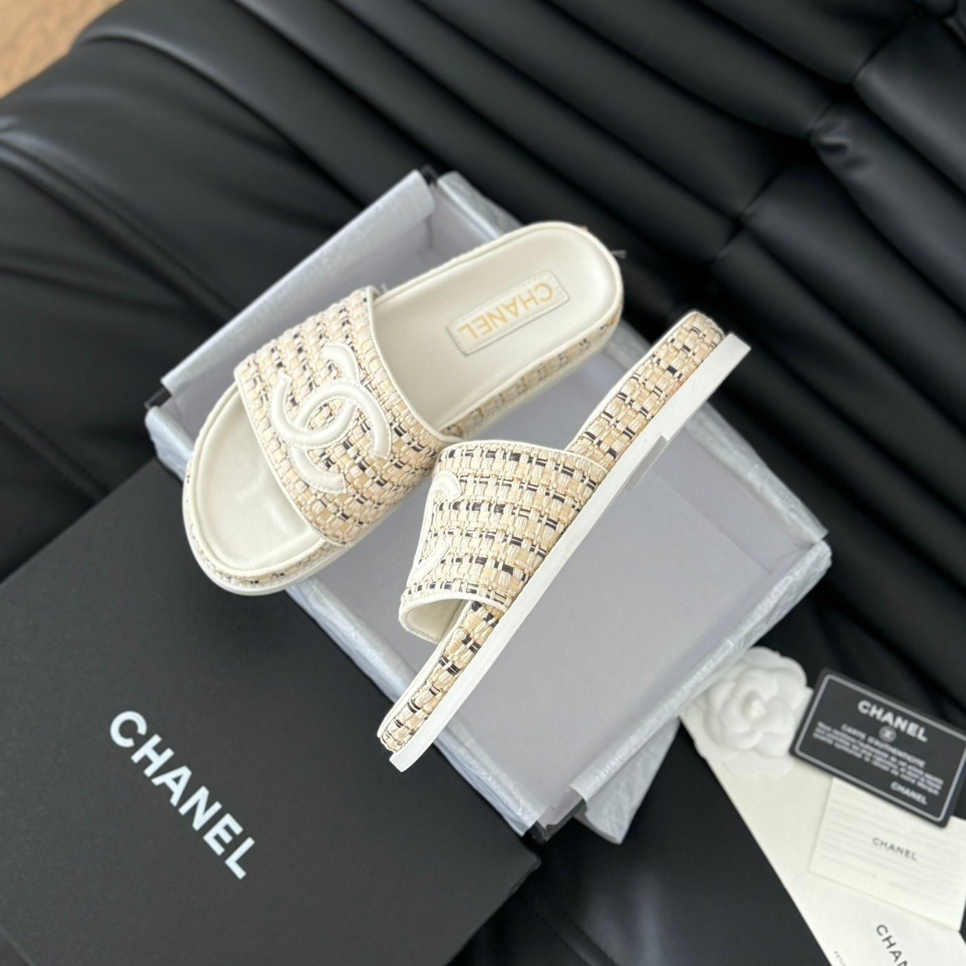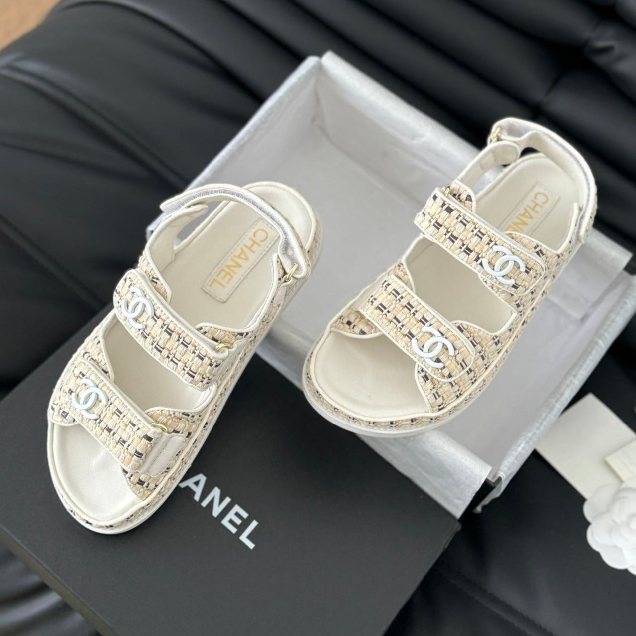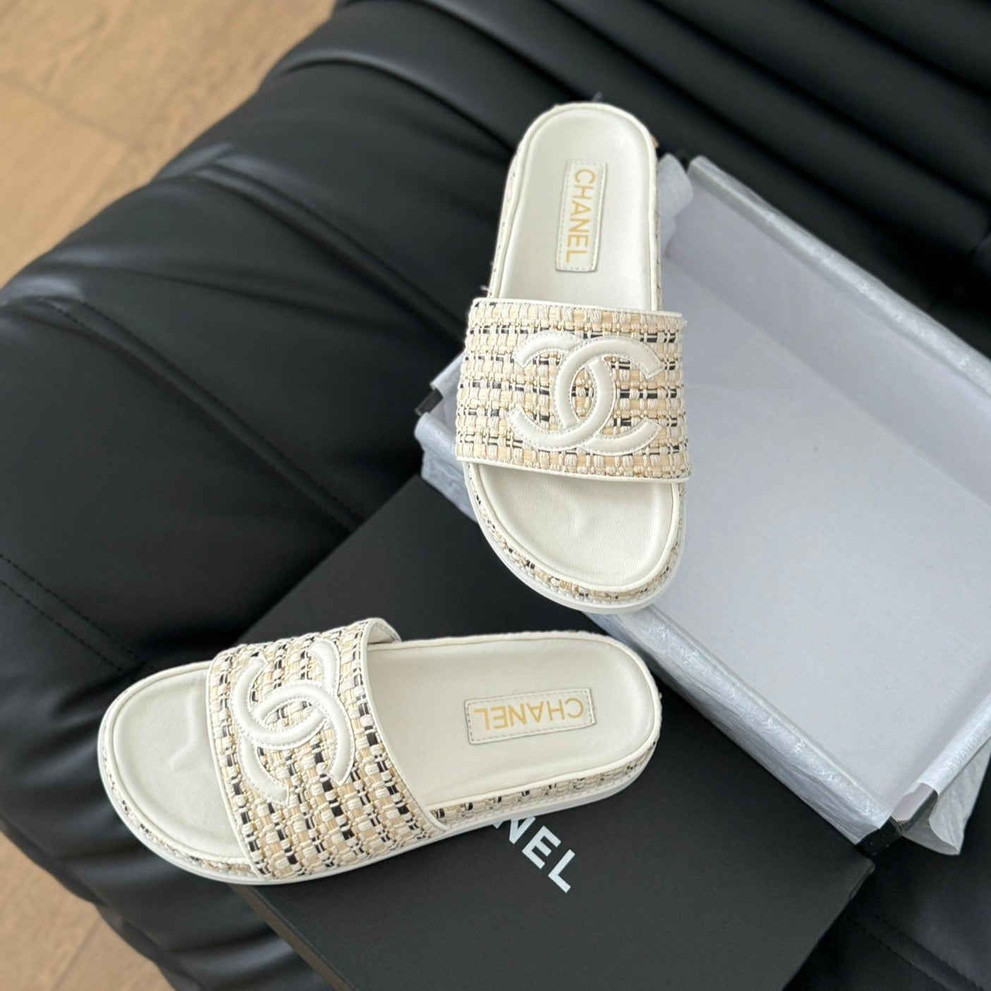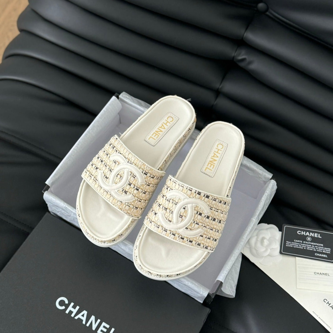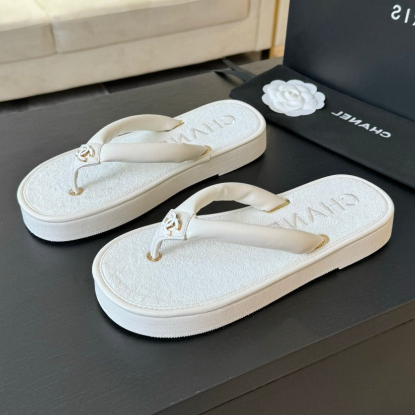 Double C Platform Biscuit Shoes Fabric Navy Blue