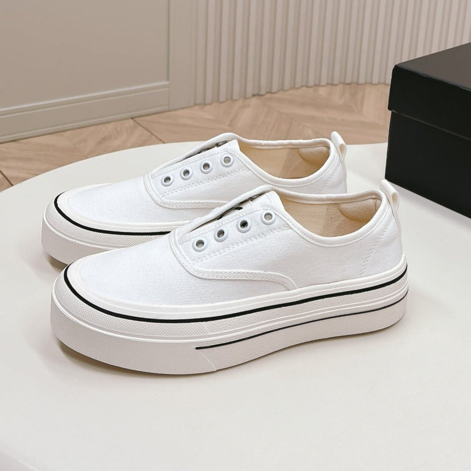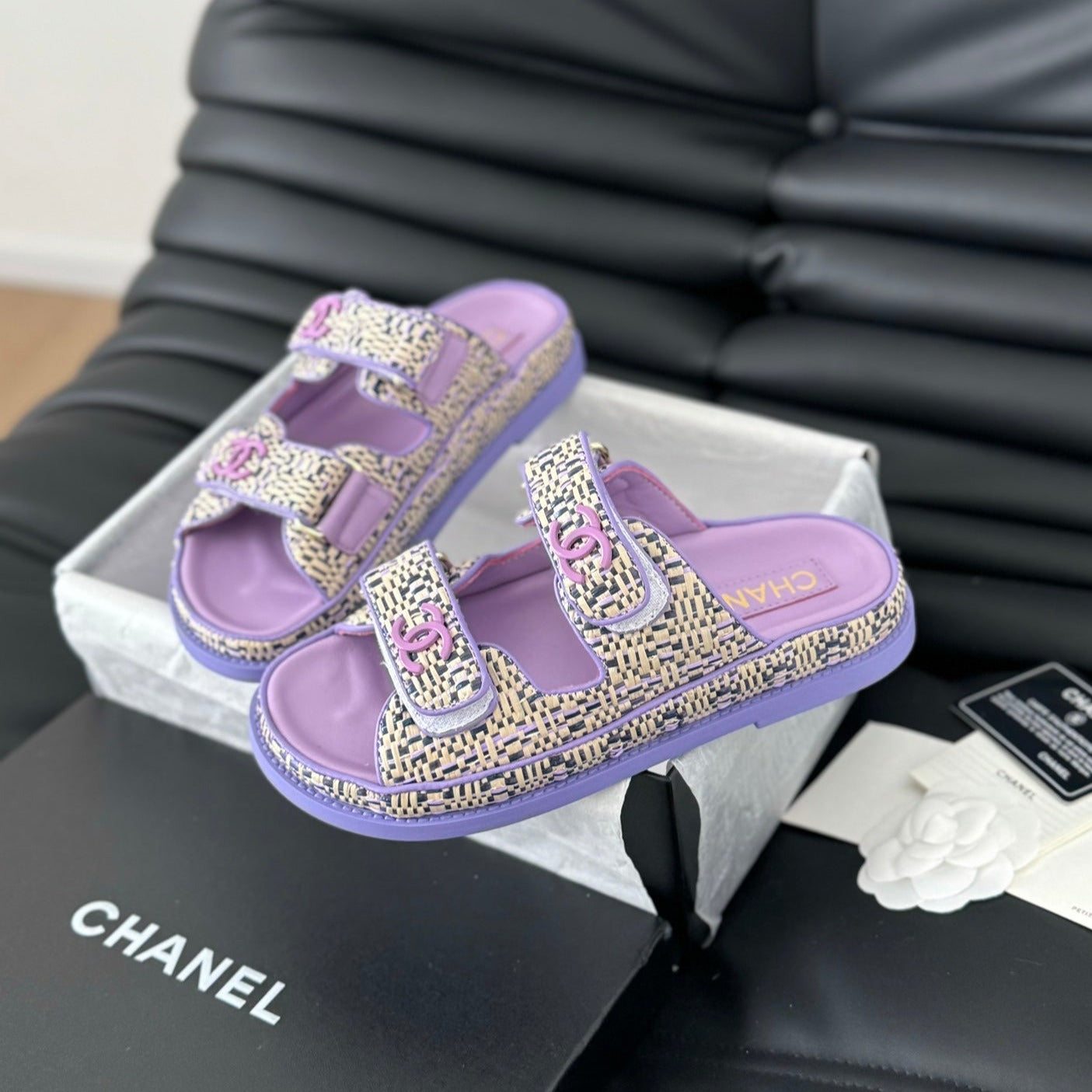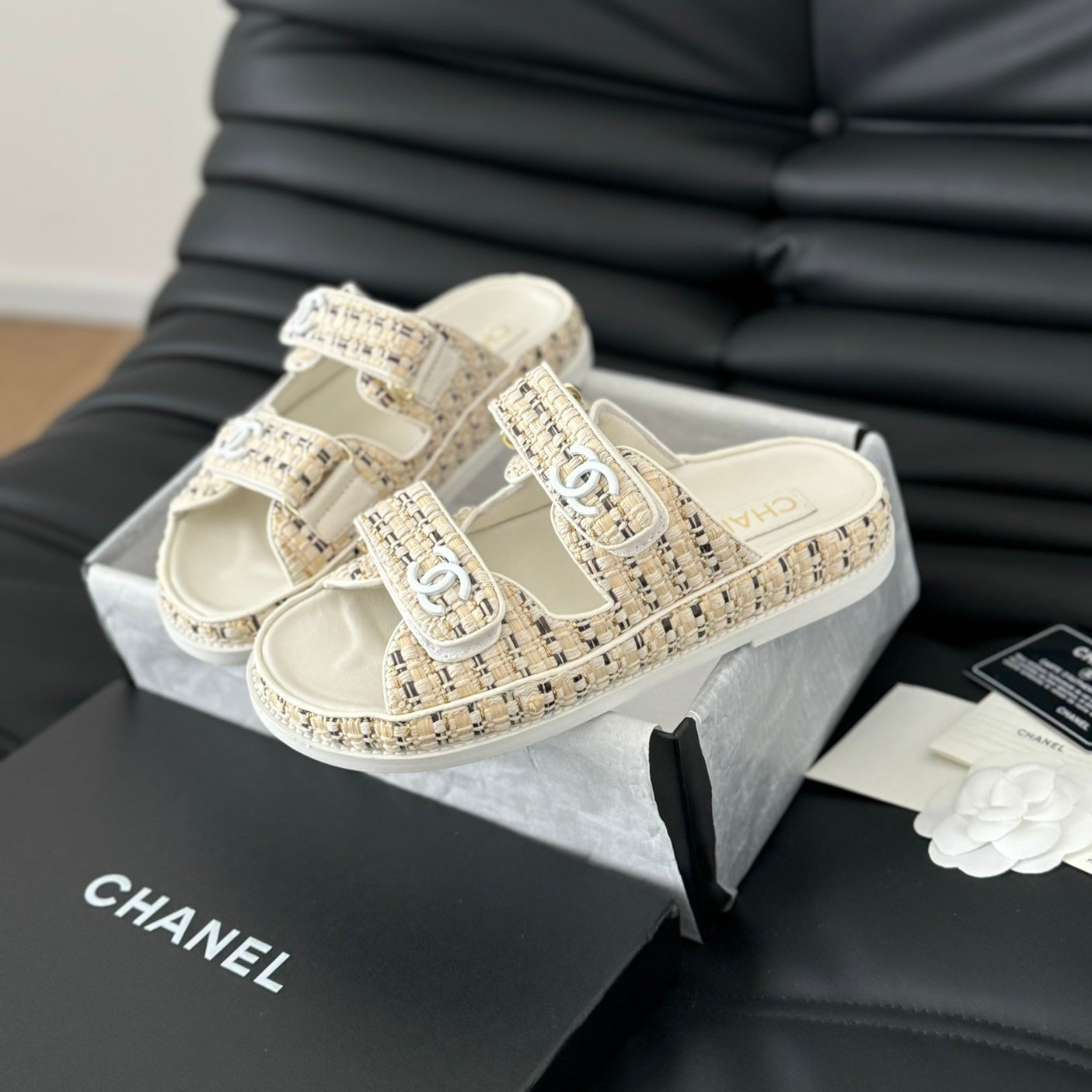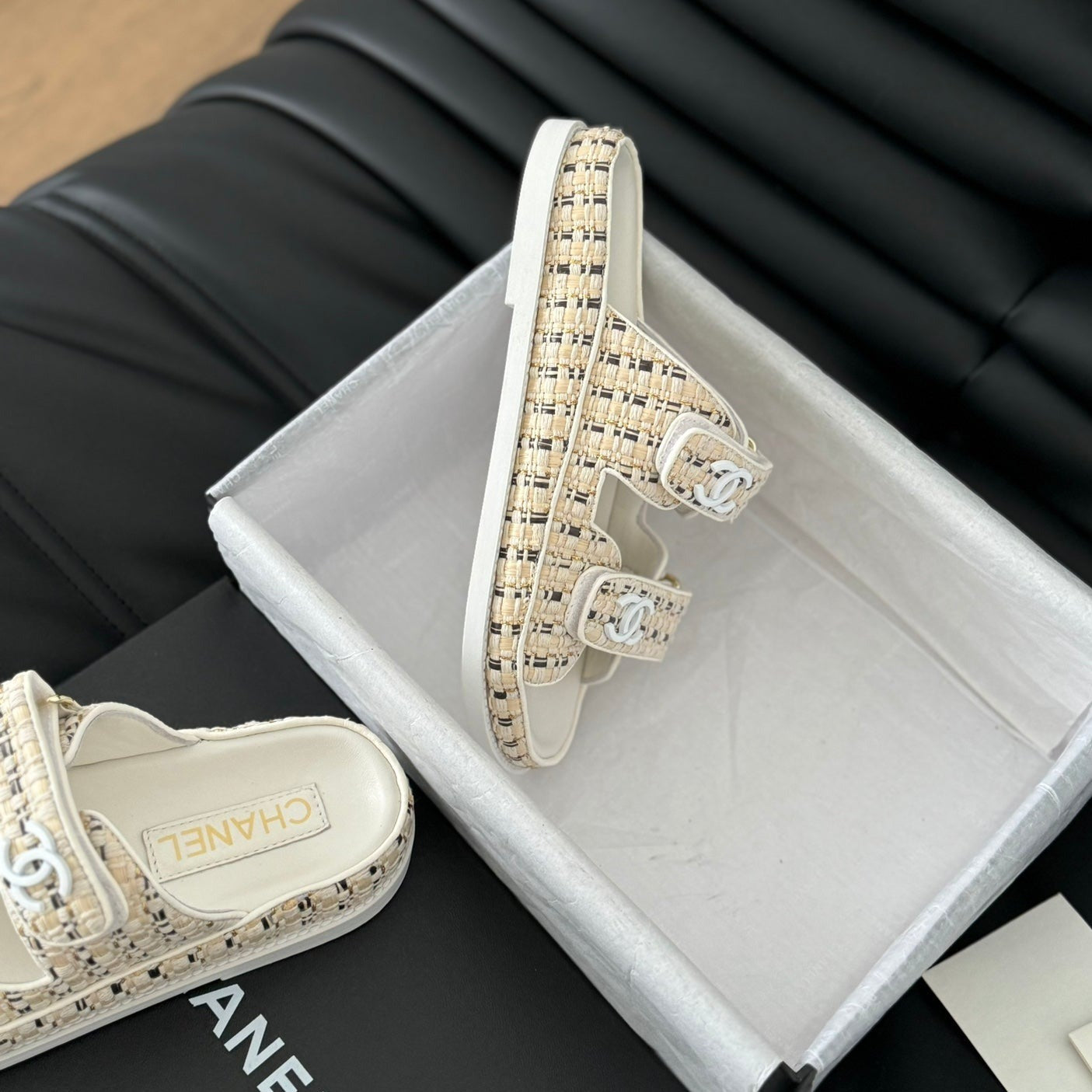 Double C Platform Biscuit Shoes Fabric Navy Blue
