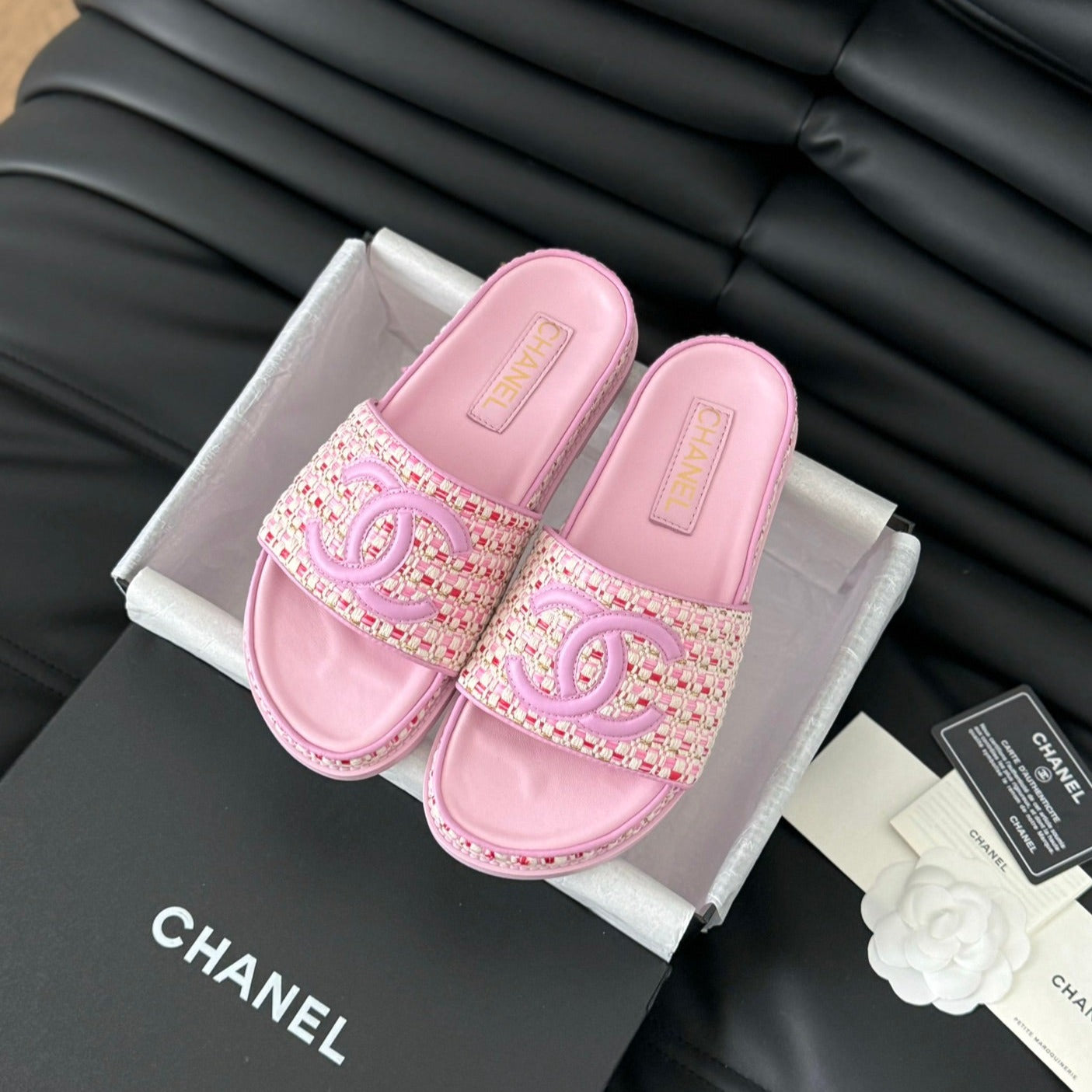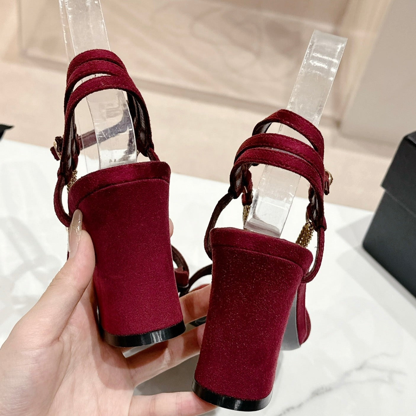 Double C Platform Biscuit Shoes Fabric Cherry Red