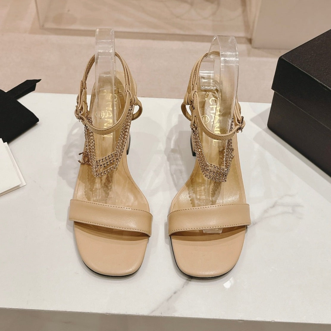 Double C Leather High Heel Sandals Beige Cream
