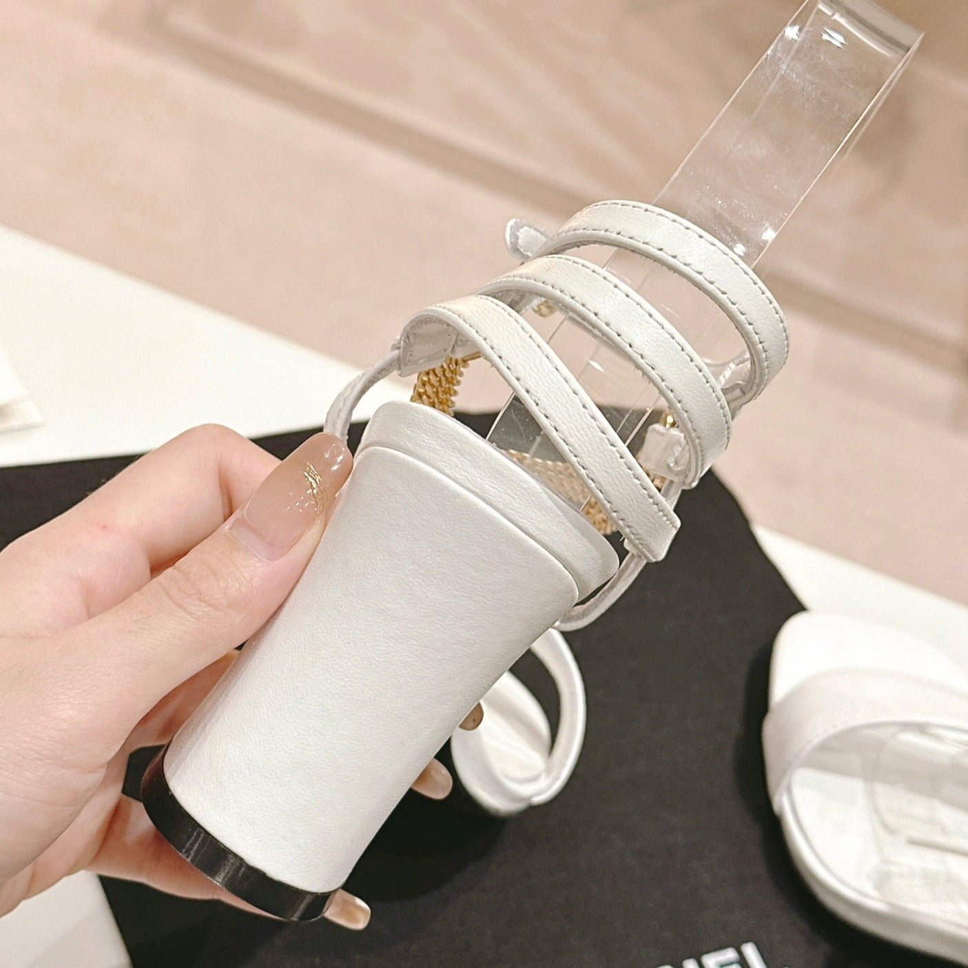 CC Little Camellia World Thin High Heels Tan Brown Lambskin