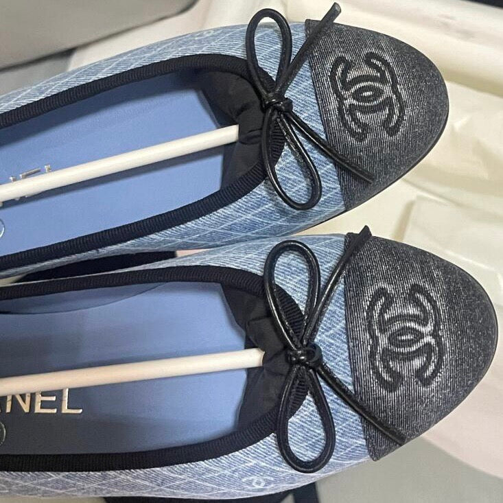 CC 25 Ballet Flat Dark Blue White Quilted Denim