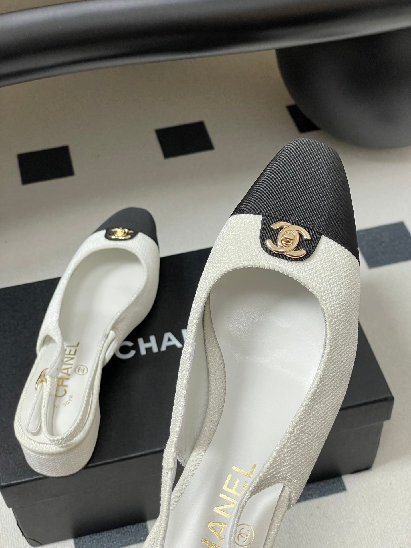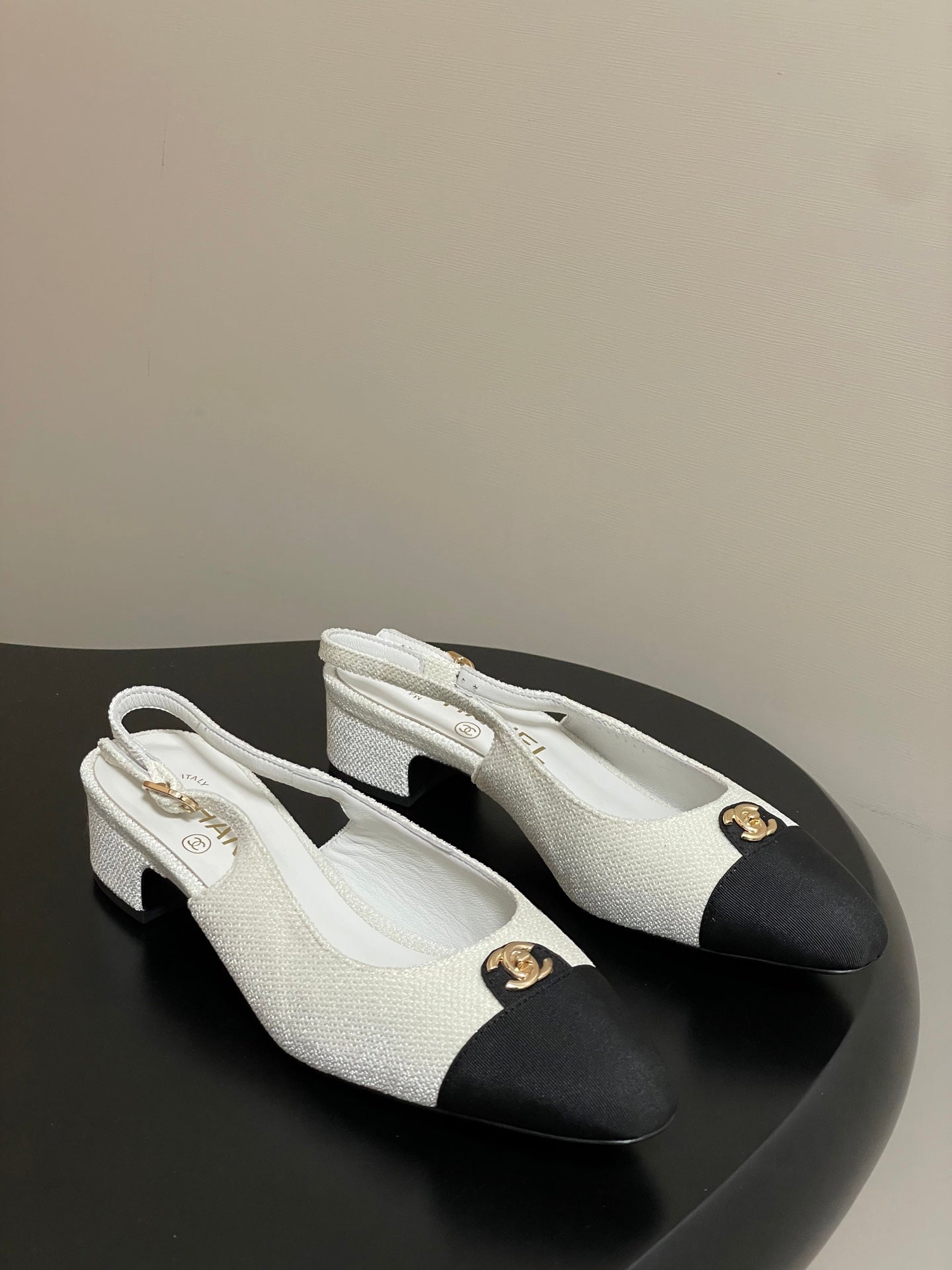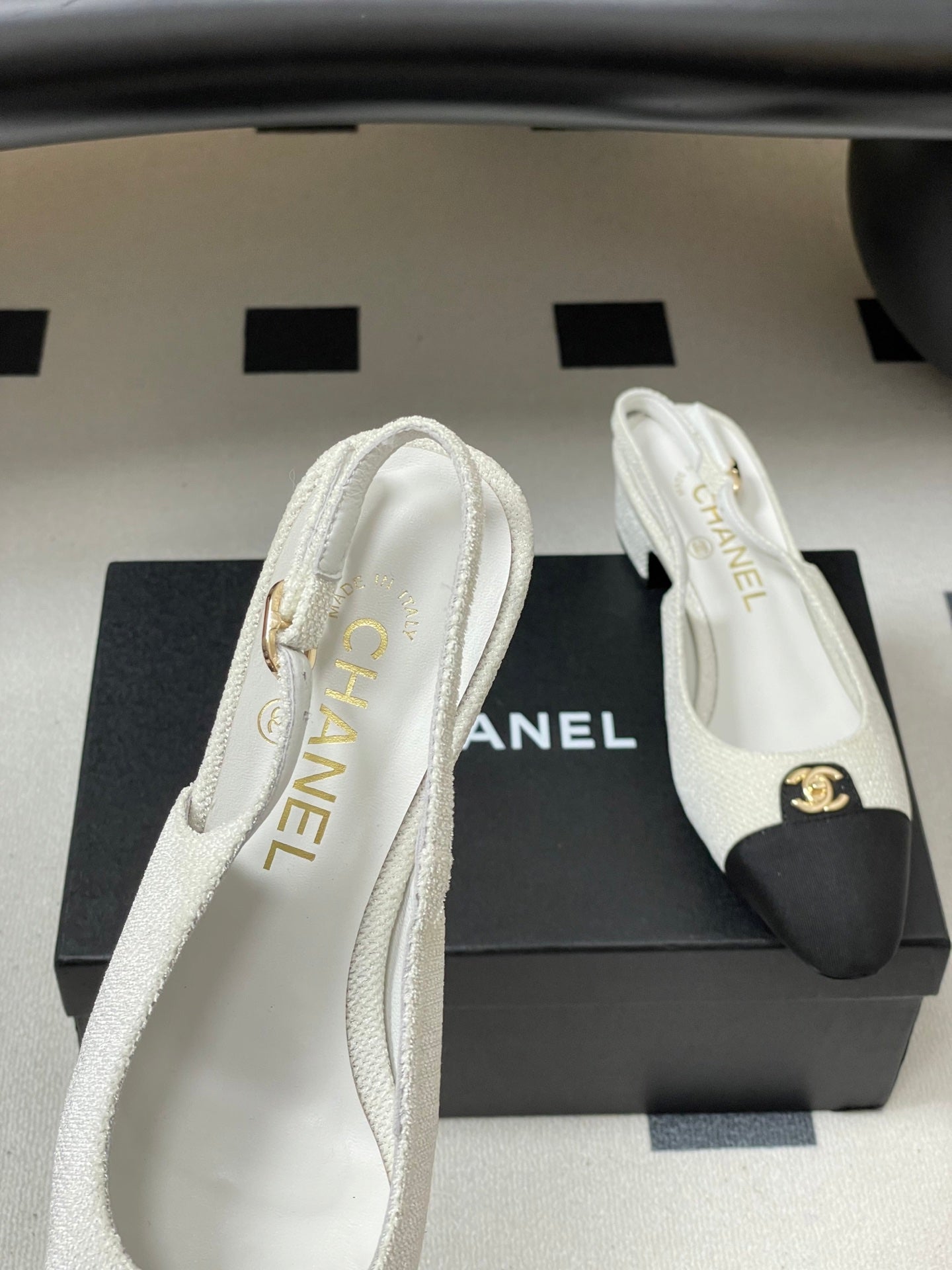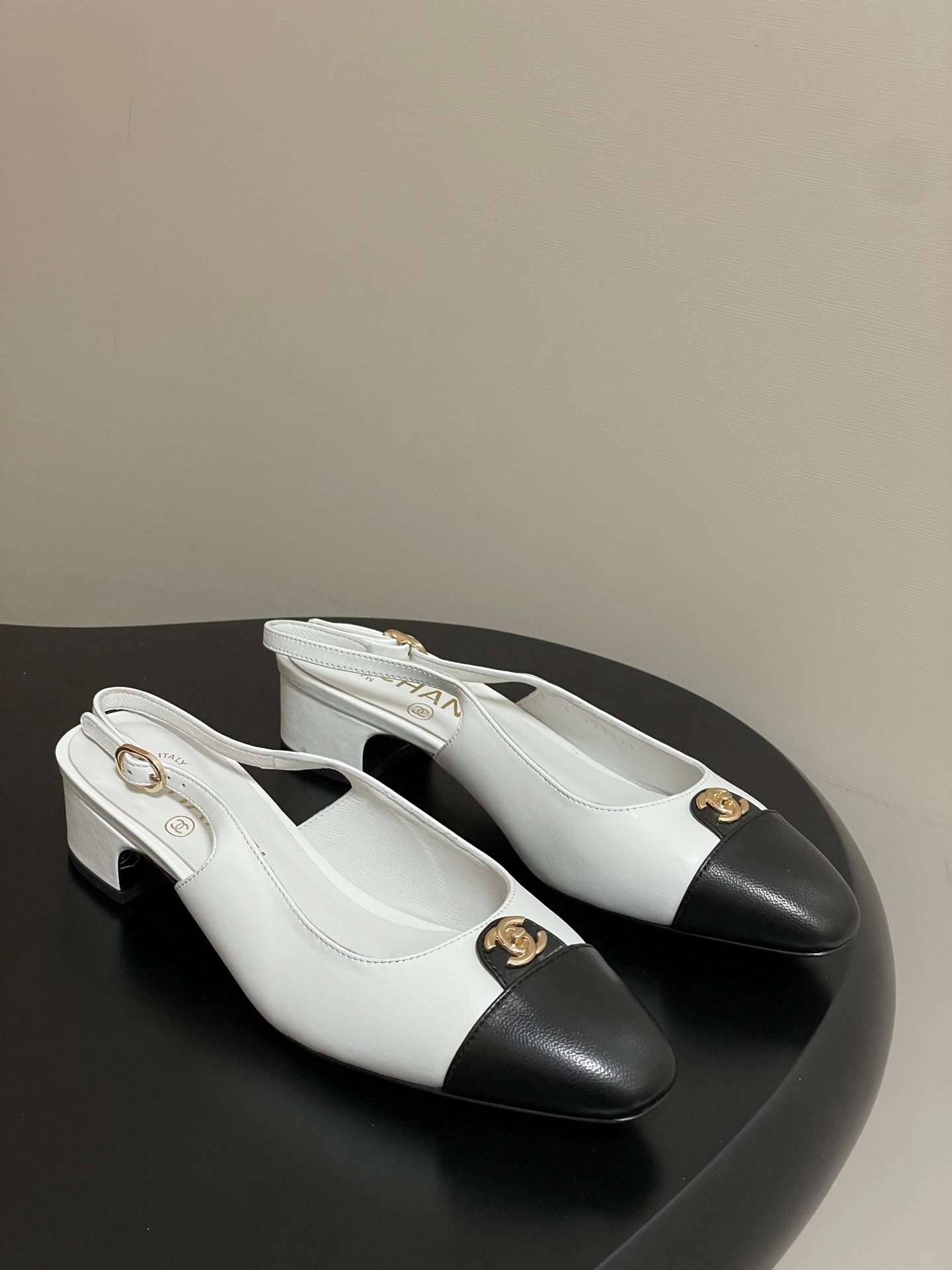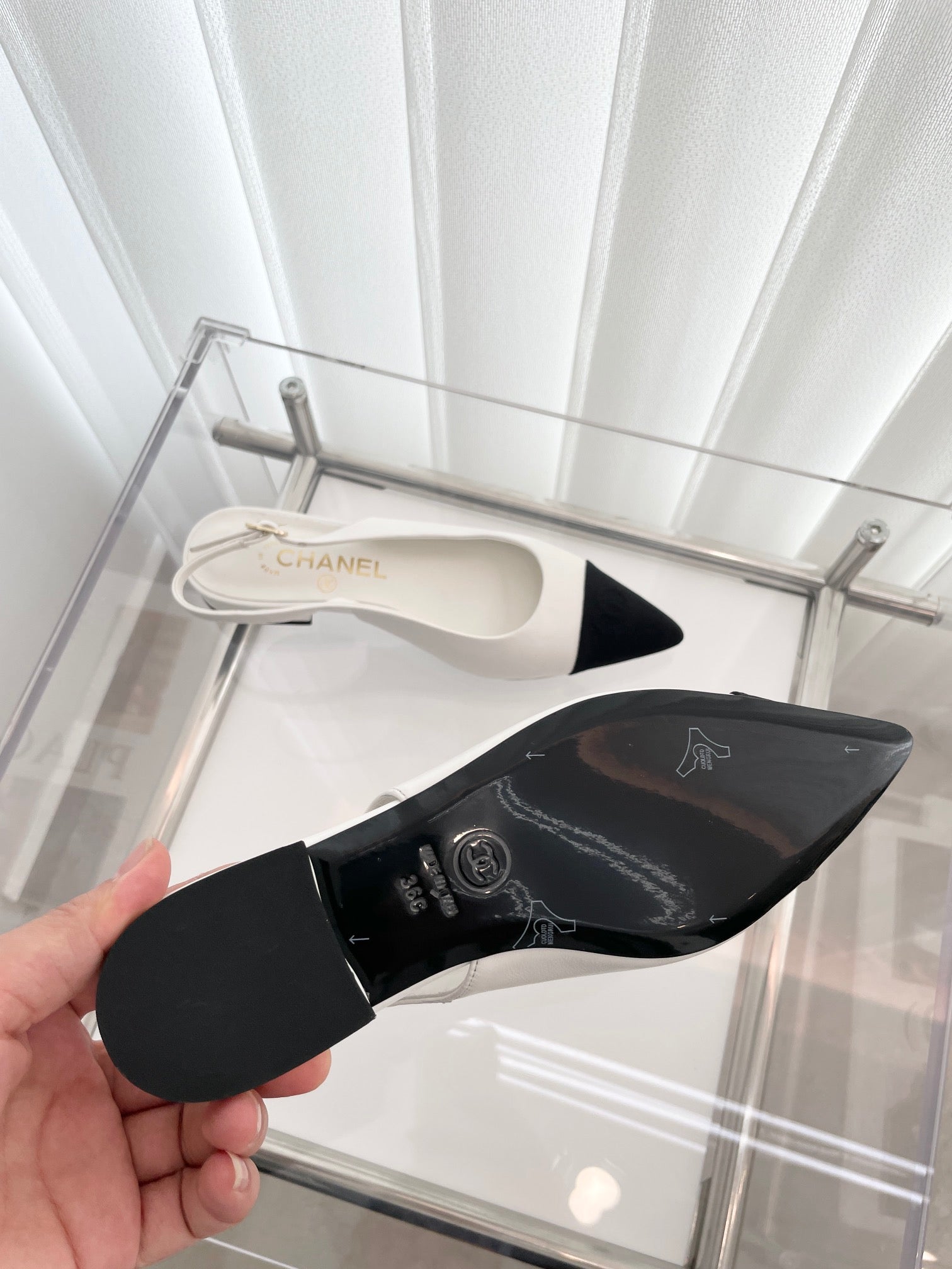 Chanel 25 Slingback 50mm White Black Lambskin 473217