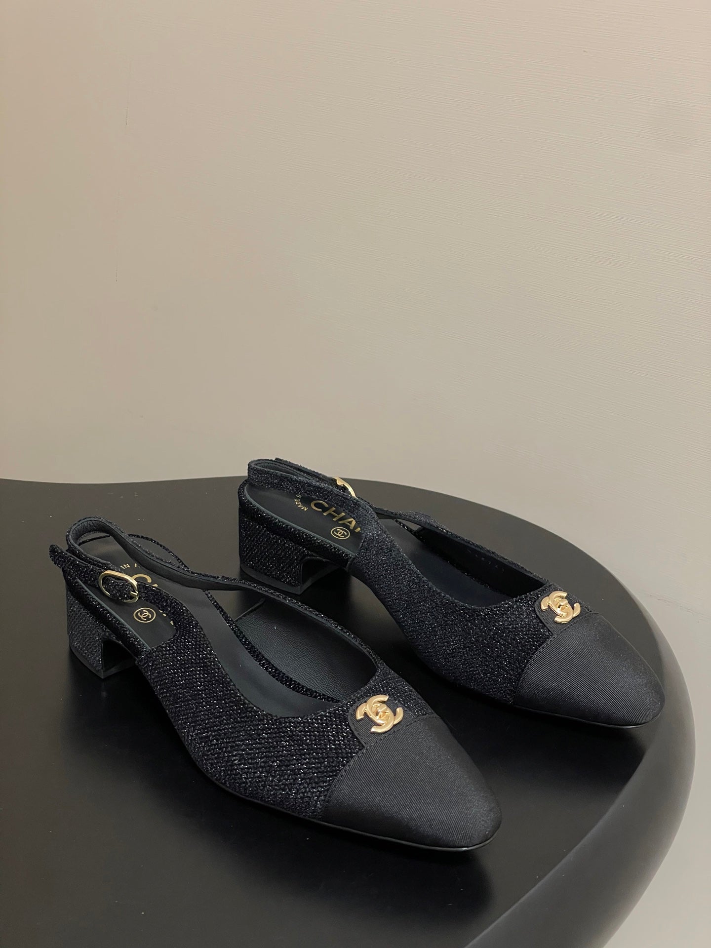 CC Slingback 15mm Black Lambskin And Denim Fabric