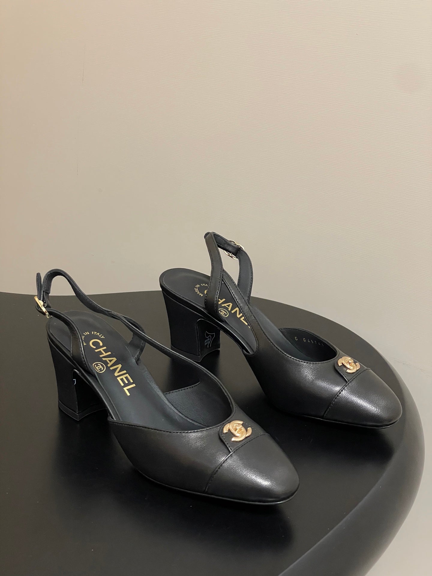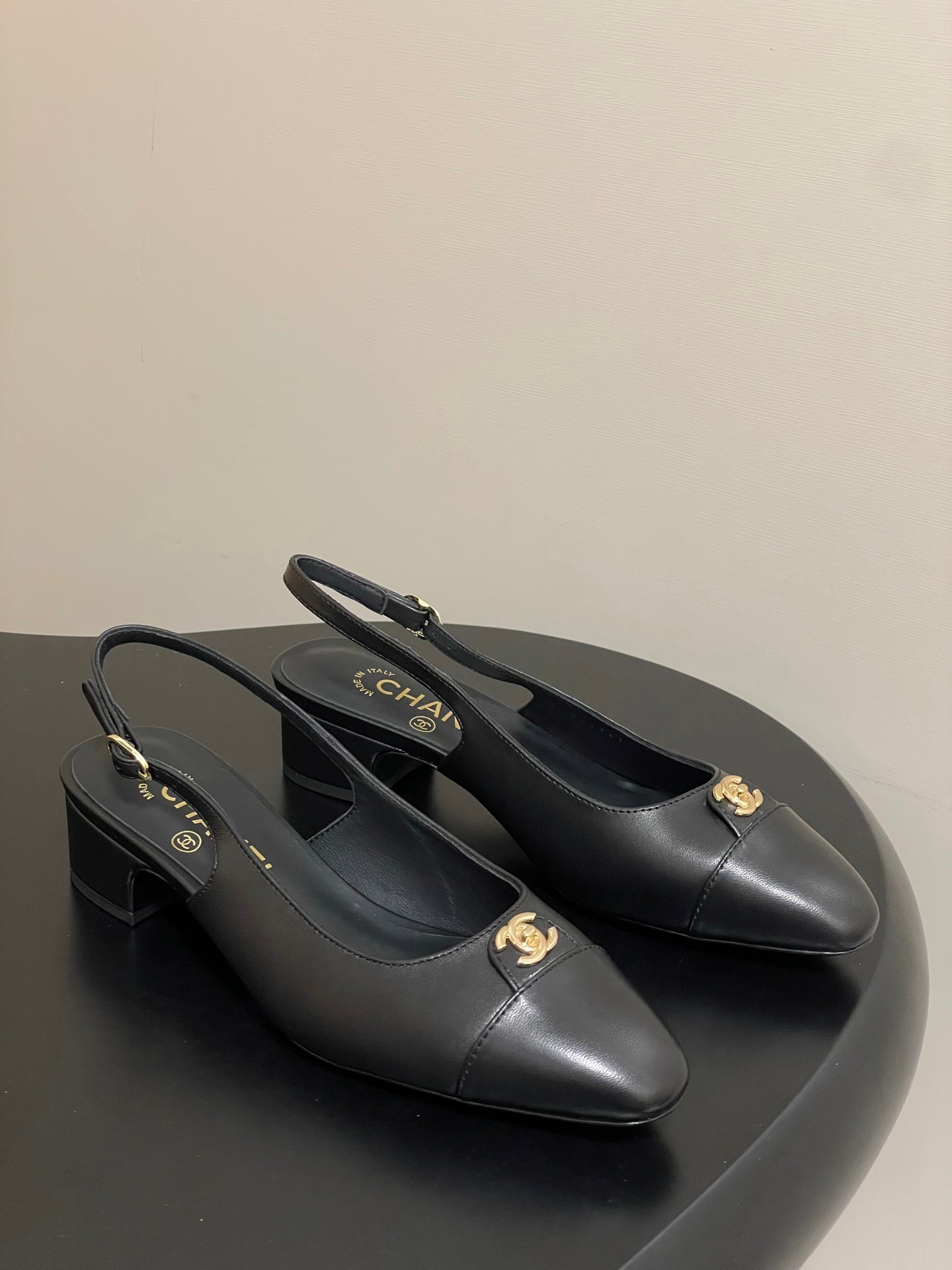 Chanel 25 Slingback 50mm Black Lambskin 473218