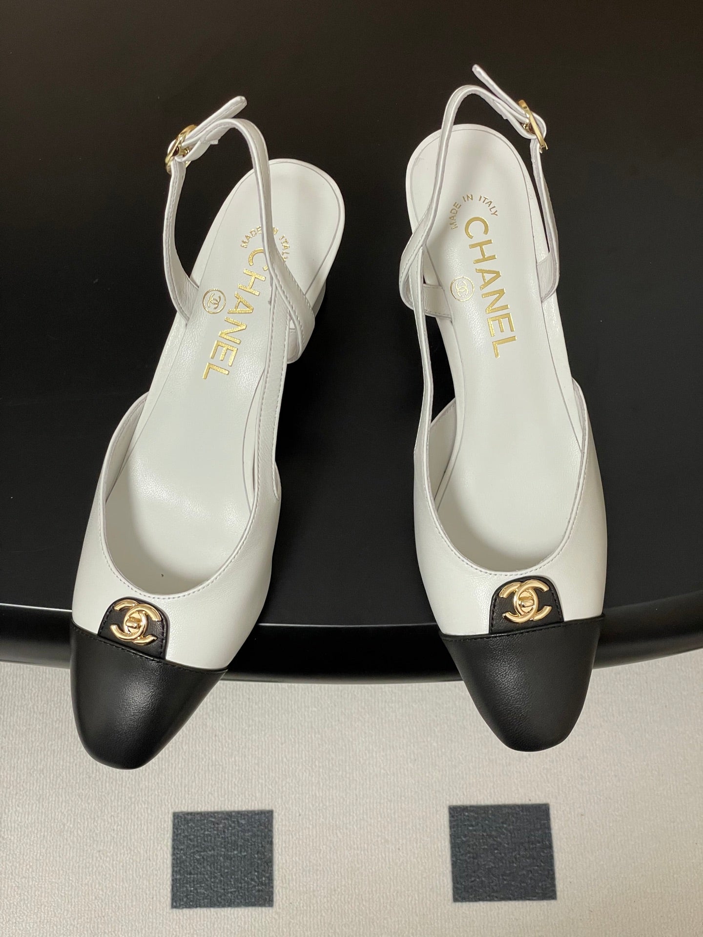 Chanel 25 Slingback 30mm White Black Lambskin 473214