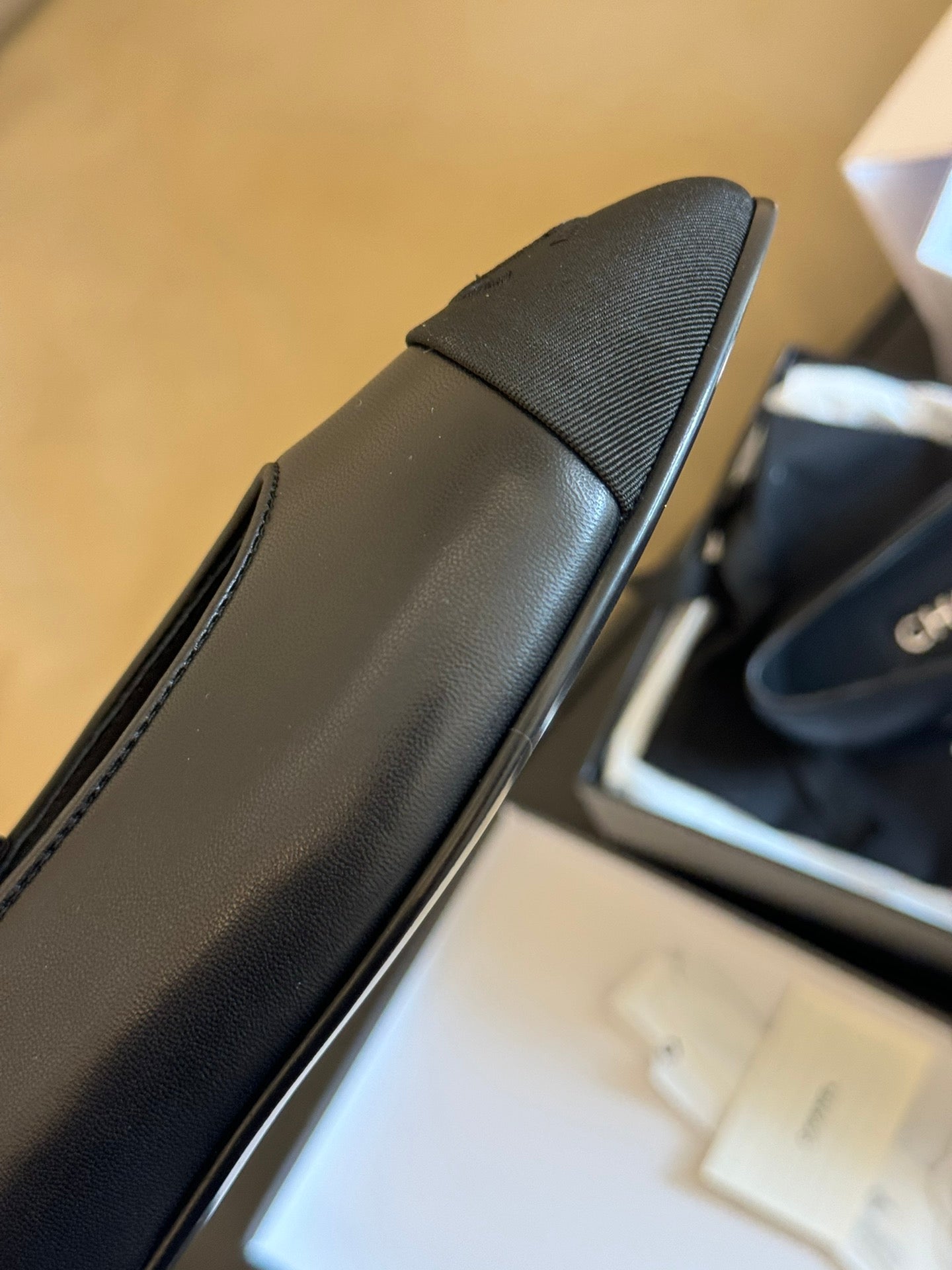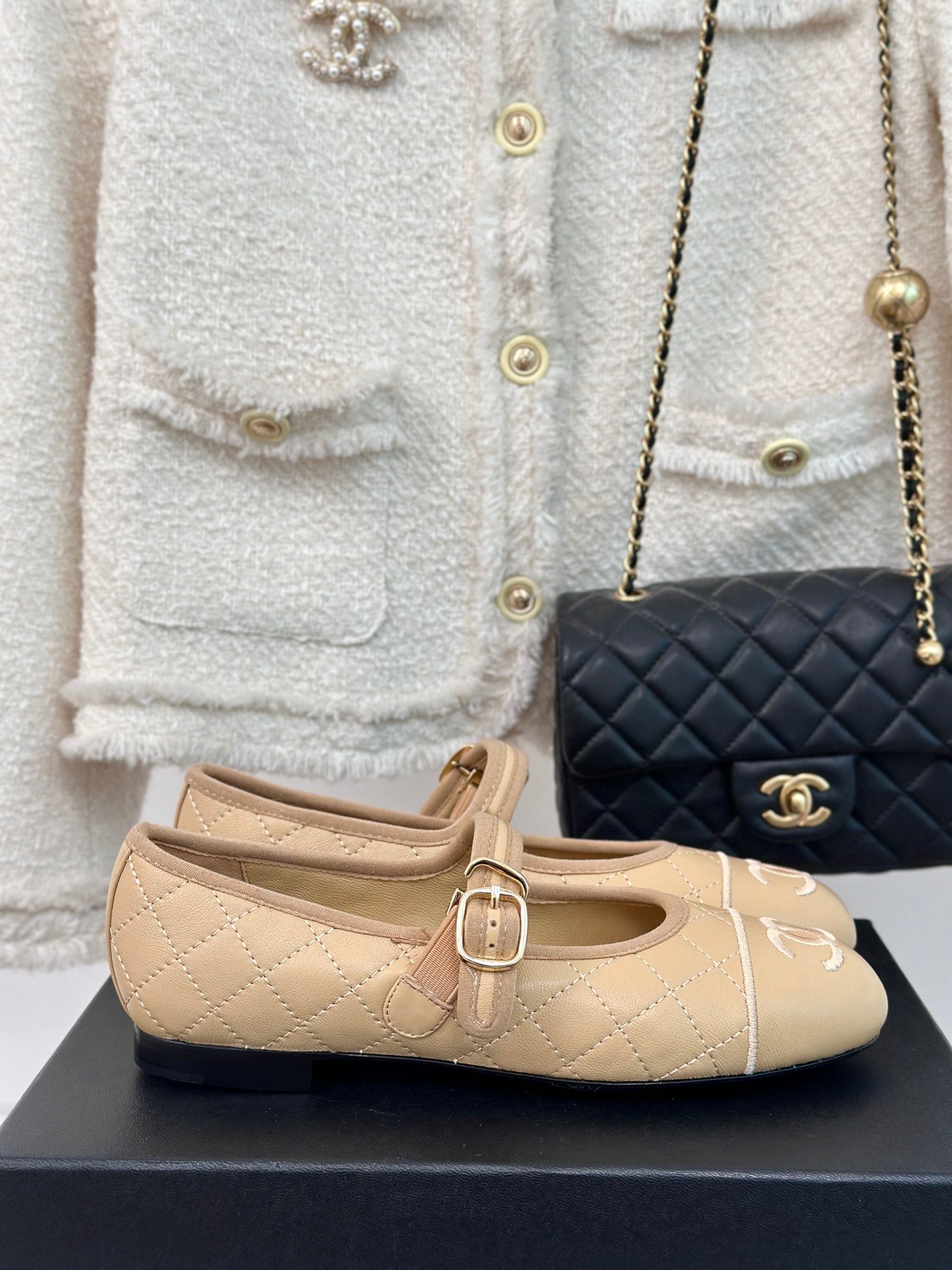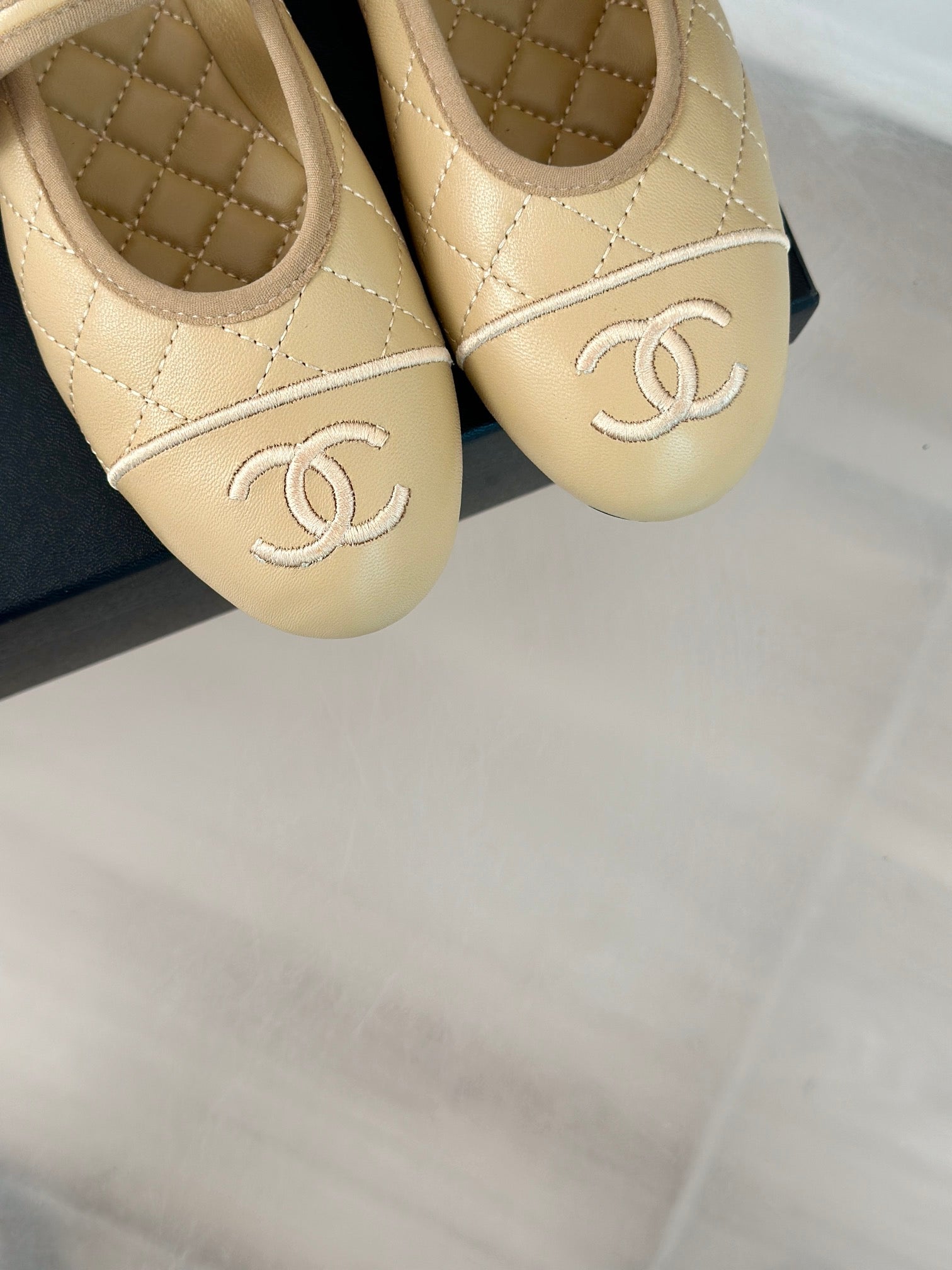 CC Slingback Flat Beige Lambskin Black Grosgrain Lambskin