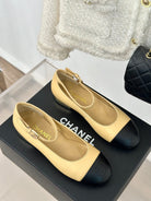 CC Mary Jane Beige Yellow Round Nose Lambskin