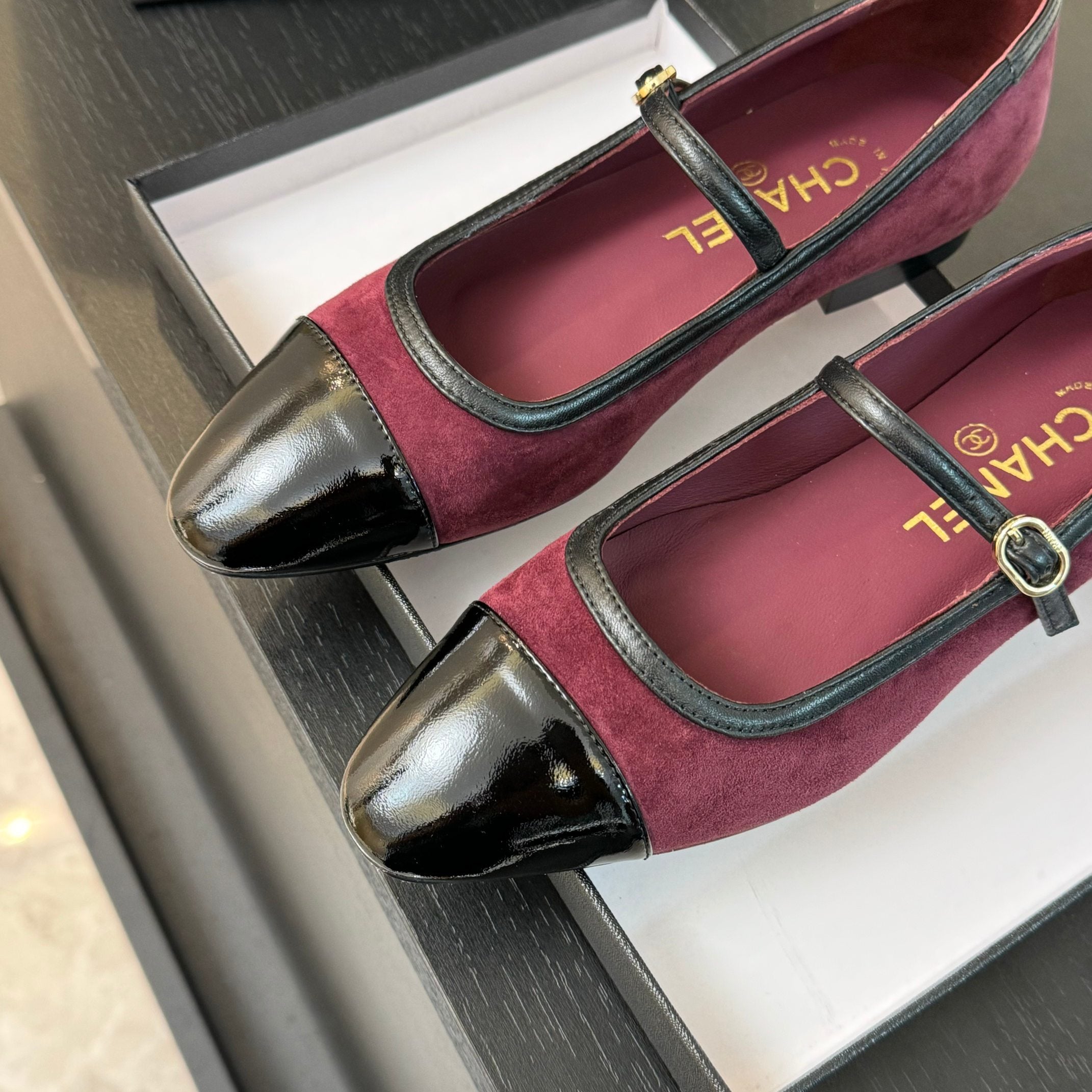 CC Mary Jane Black Dark Red Suede