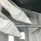 CC Pumps 50 White Mesh Leather Pointed Toe