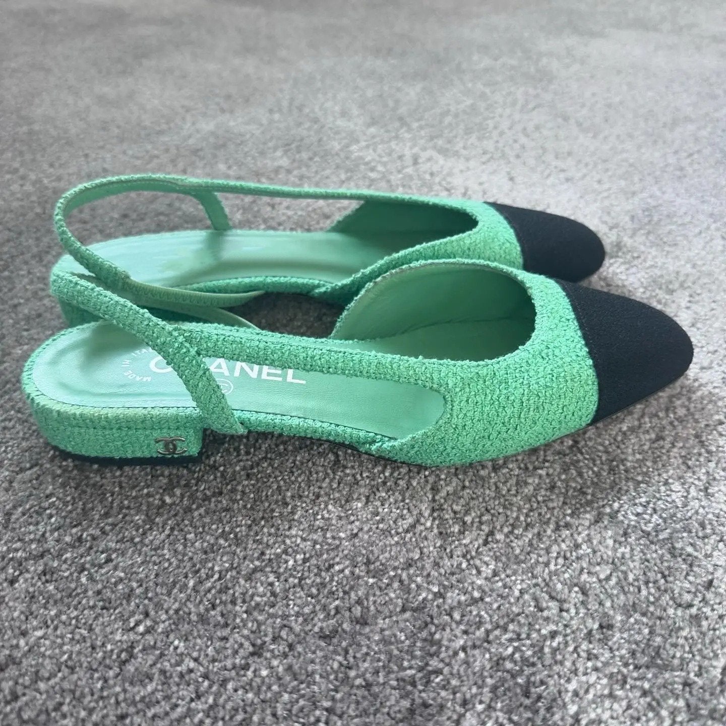 slingbacks green black lambskin tweed
