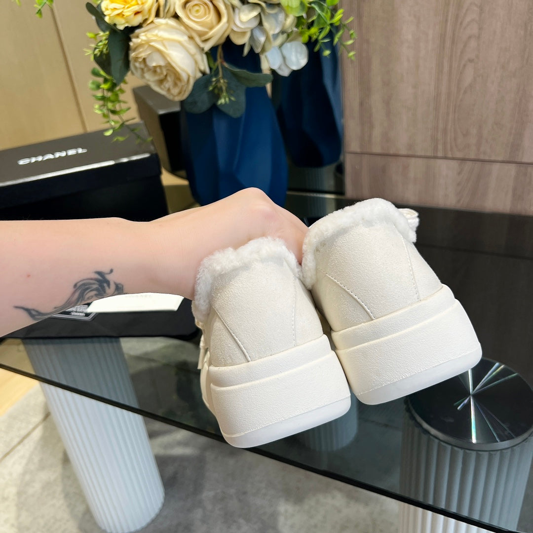 CC Sneaker Thick-Soled White Suede Wool Lining Fleece