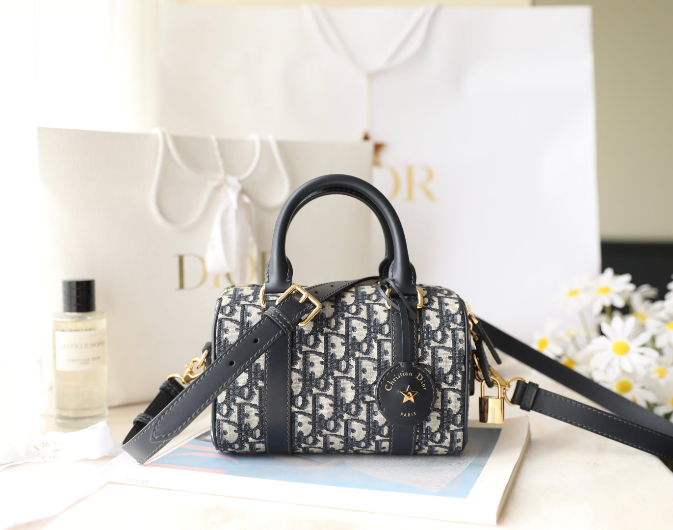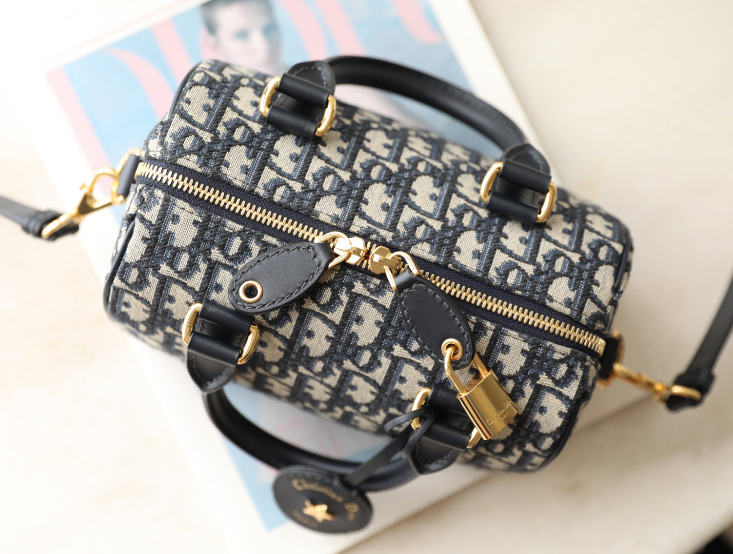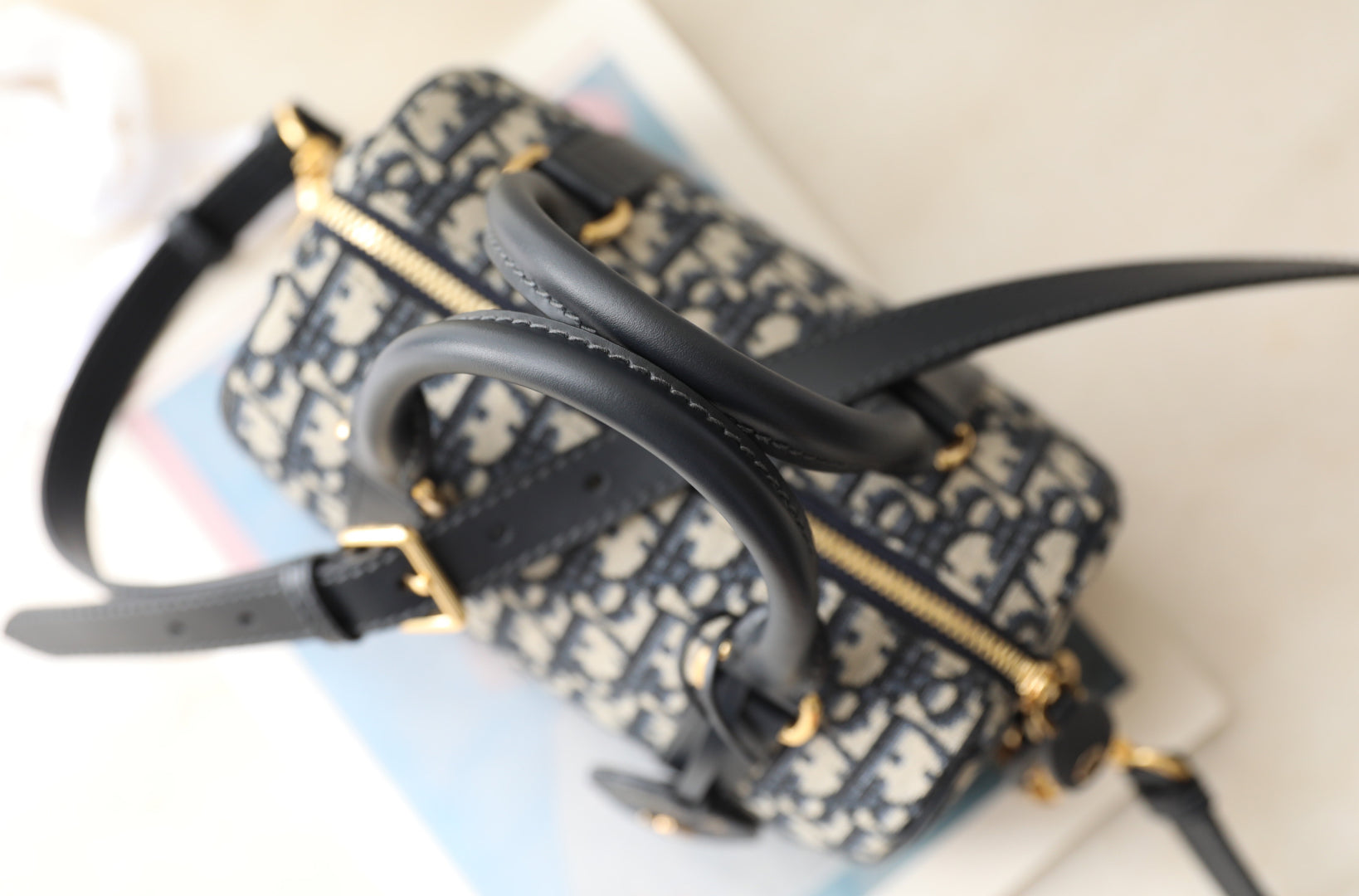 CD Monogram Pillow Bag Blue Beige Canvas