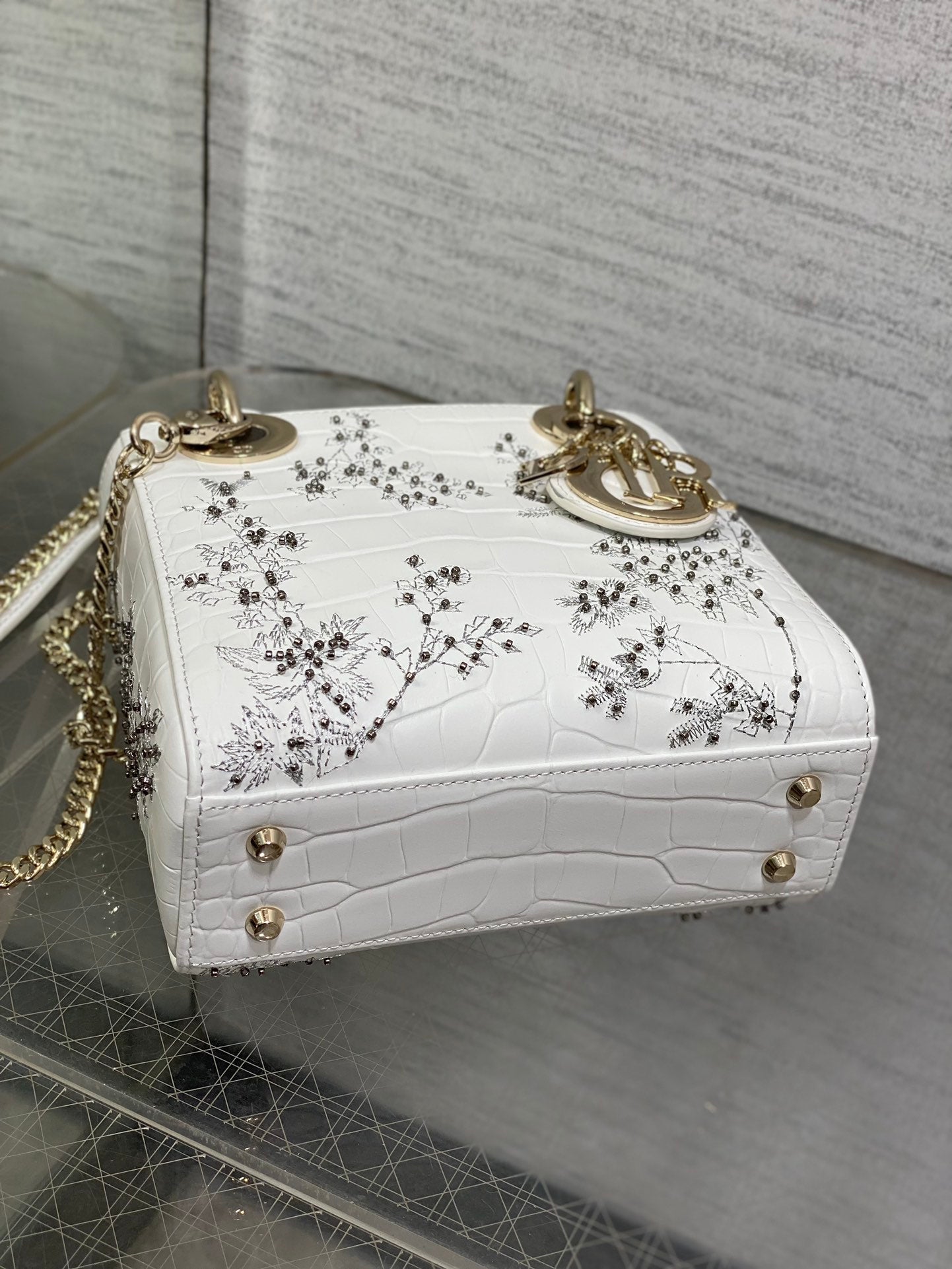 Lady Bag 17cm White Crocodile Leather Light Gold Hardware