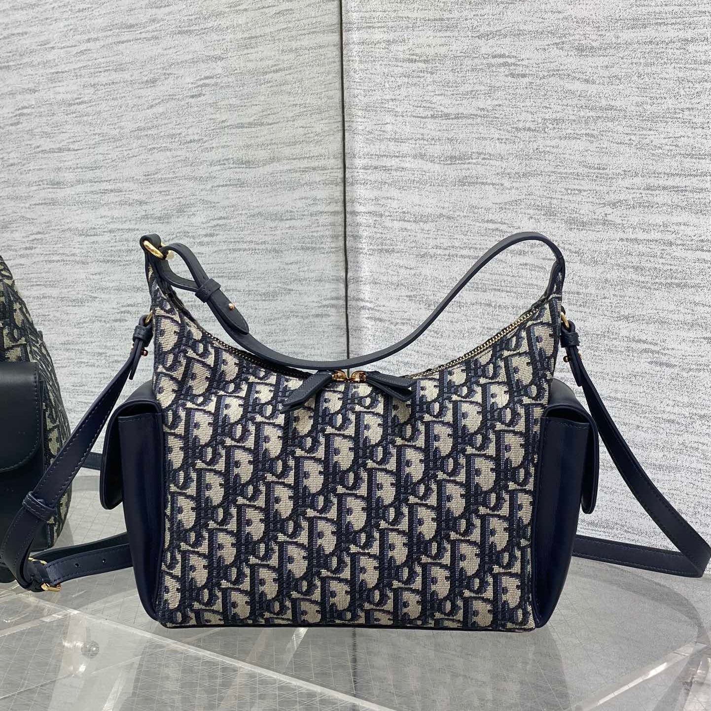 CD Jacquard Hobo Bag 23 With Chain Dark Blue White Canvas