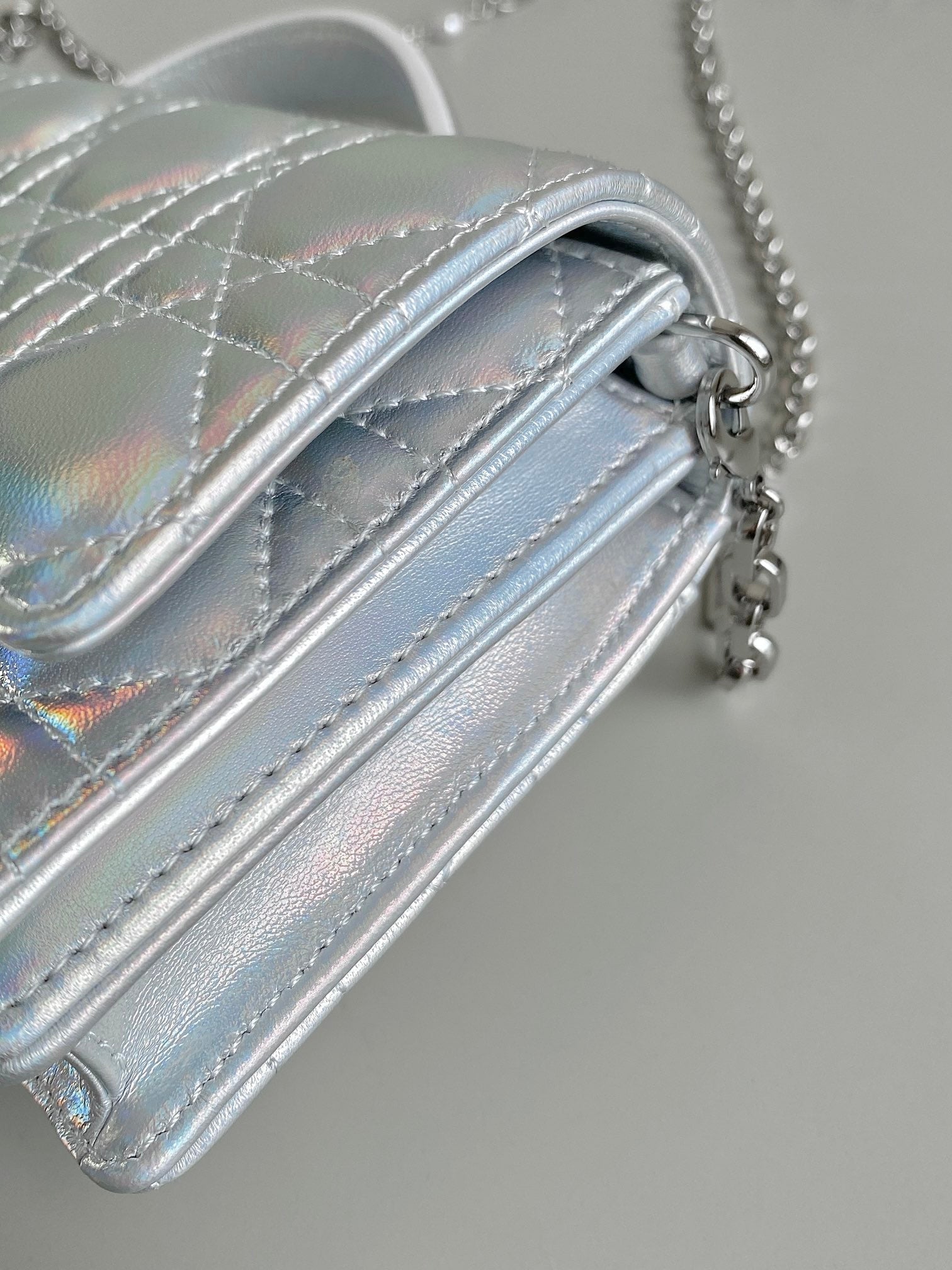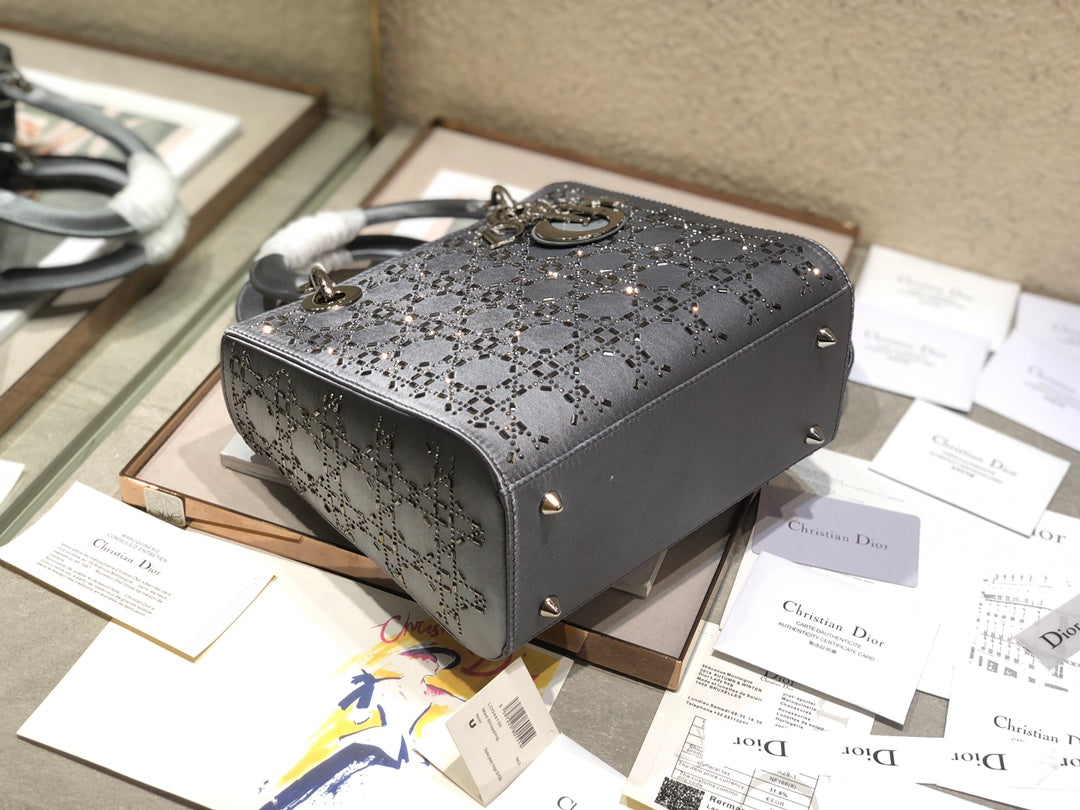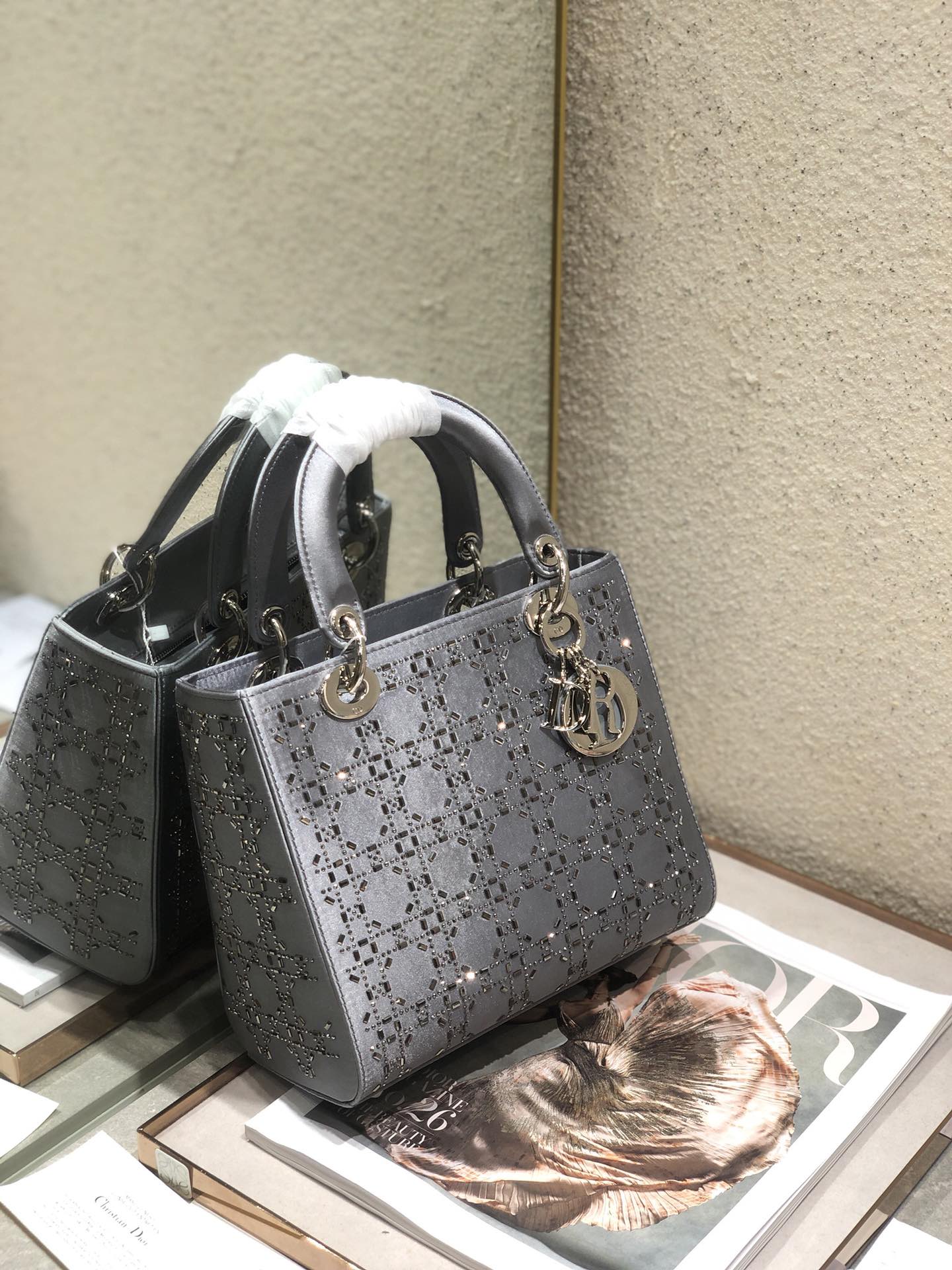 CD Lady Dior Mini Diamond Bag Gray Satin