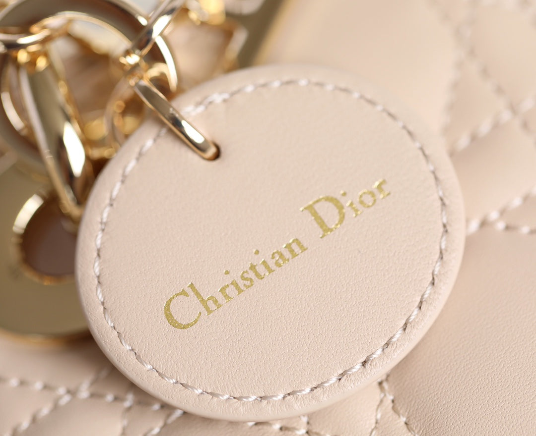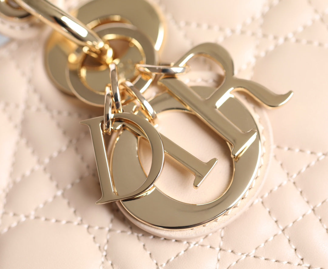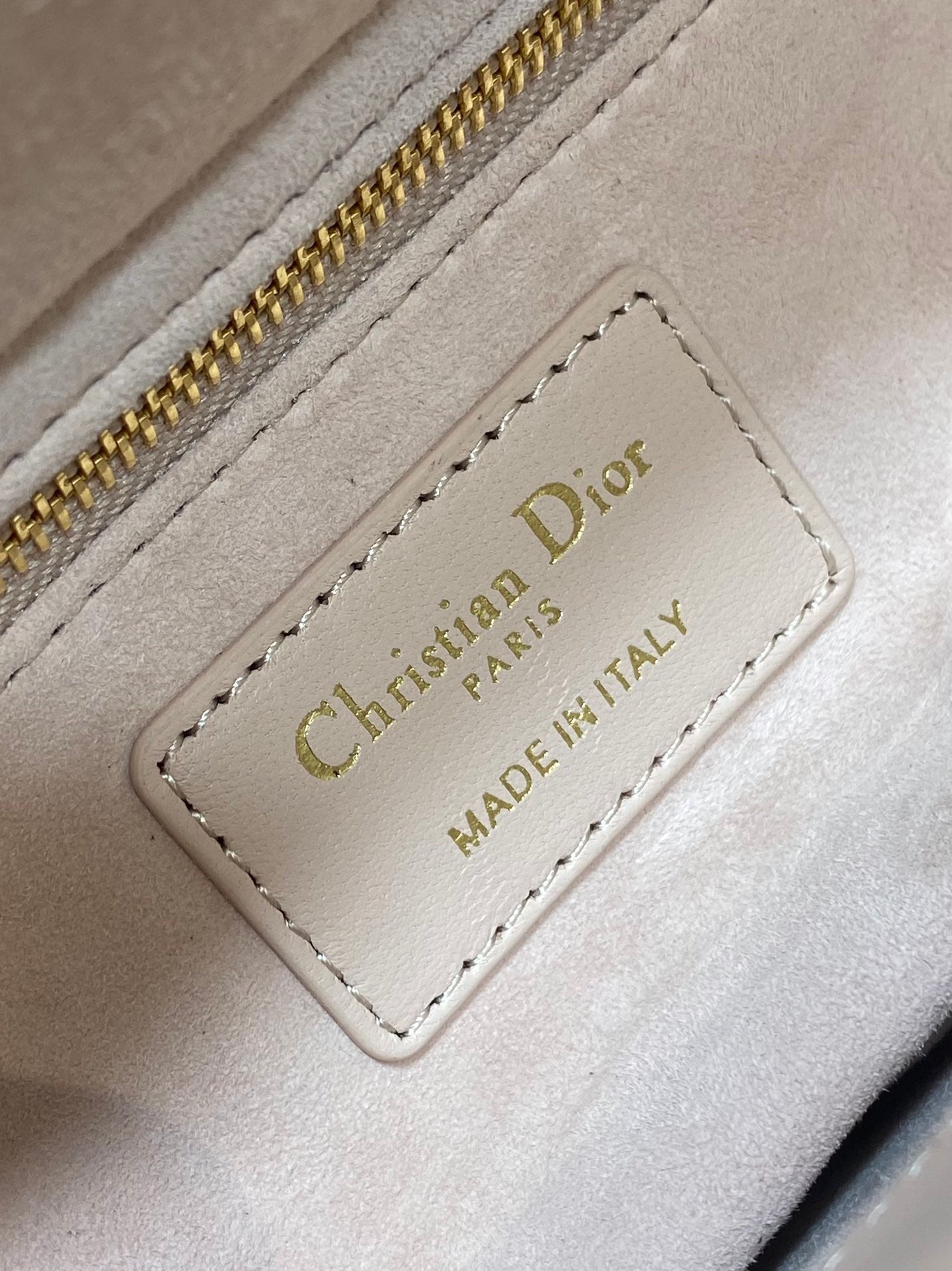 CD Lady Bag 20cm White Lambskin Light Gold Hardware