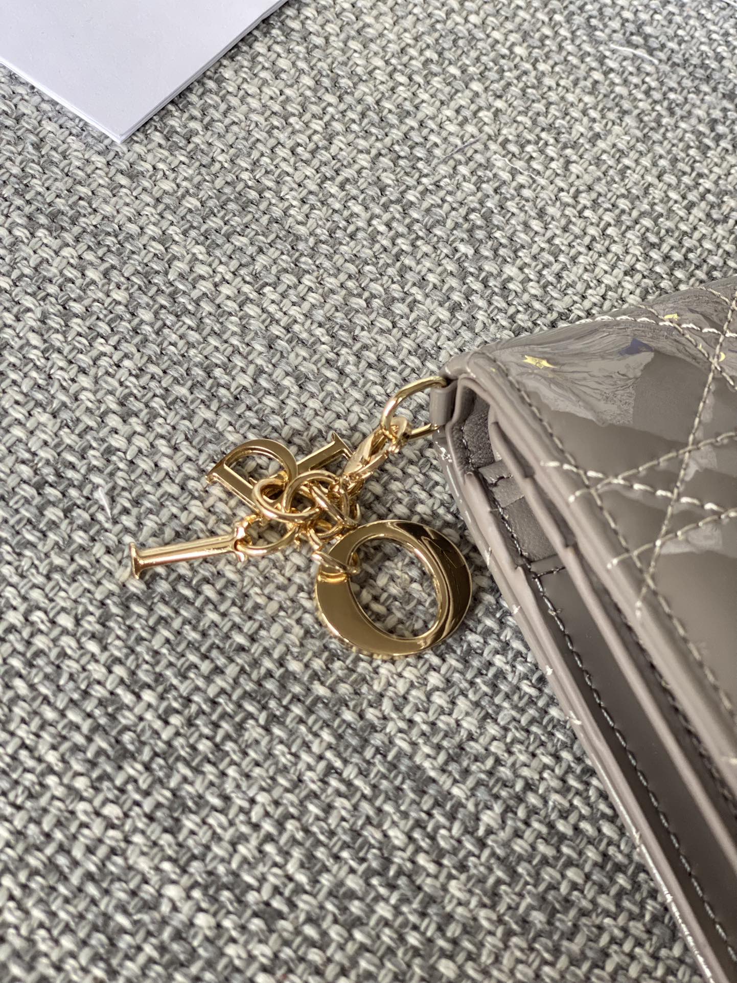 CD Caro 11cm Compact Wallet Shiny Grey Calfskin