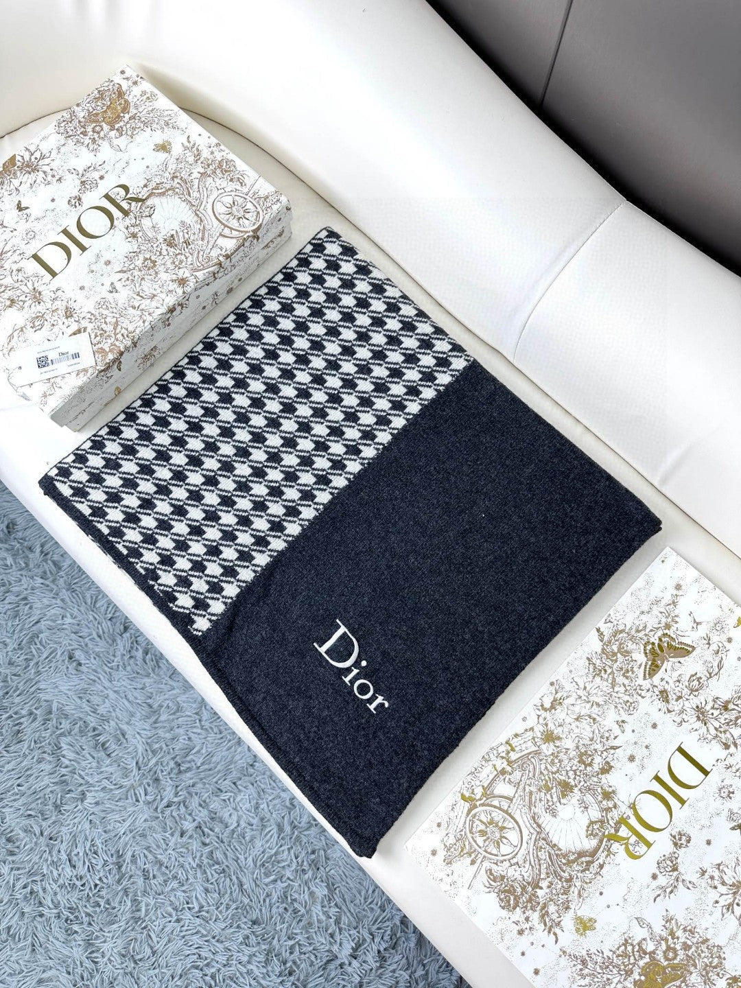 SCARF 190 CM IN BLACK MIX WHITE CARO CASHMERE 388127
