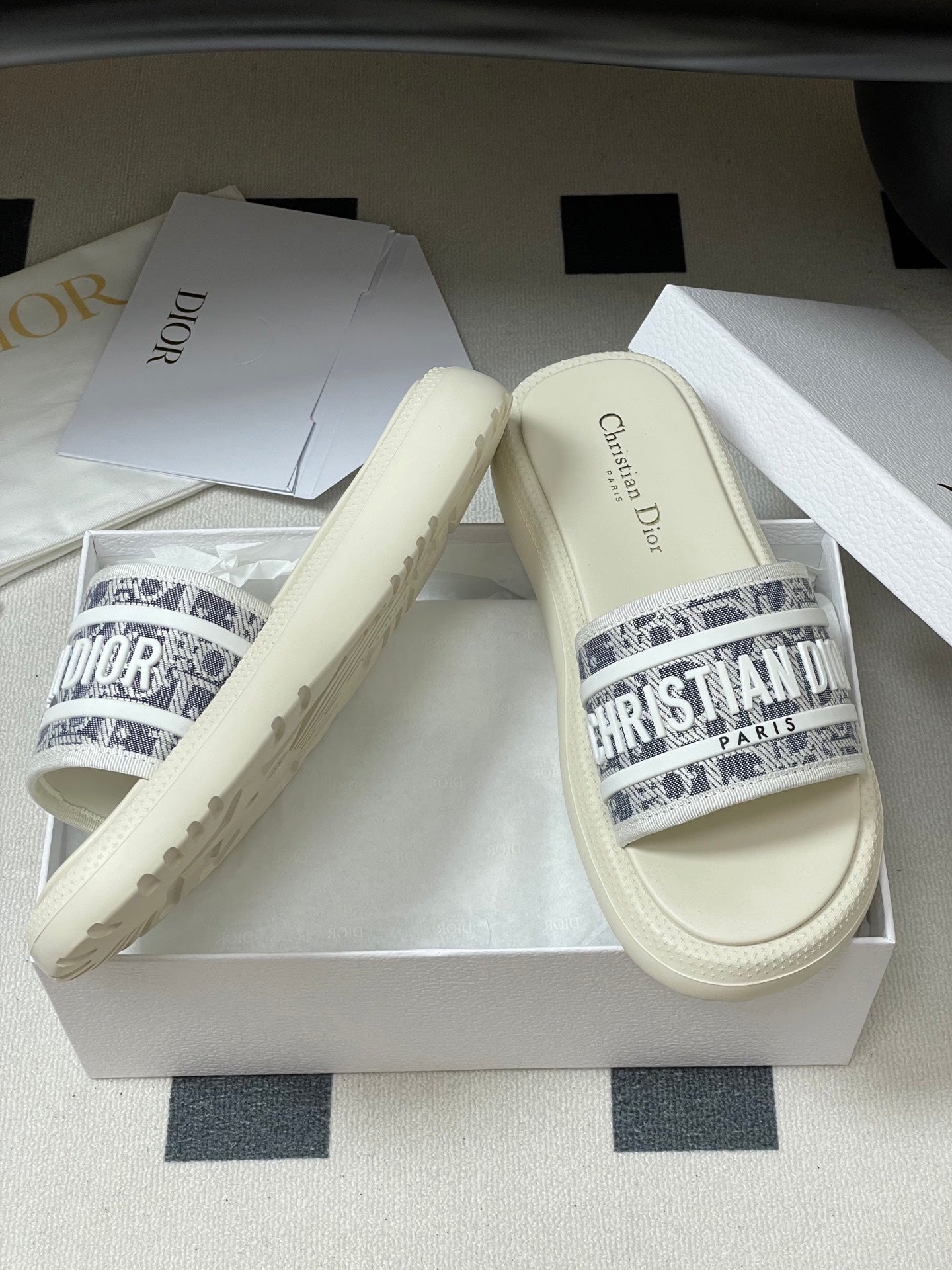 CD 25 Slippers White Gray Fabric 394062
