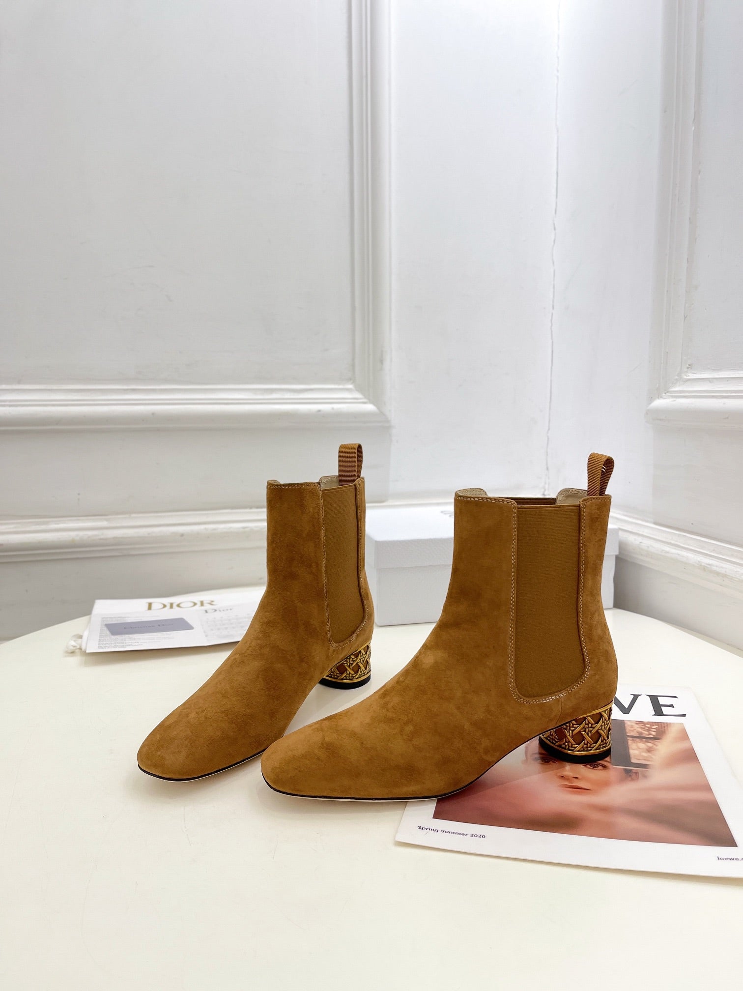 CD Icon Heeled Ankle Boot 40mm Brown Orange Suede