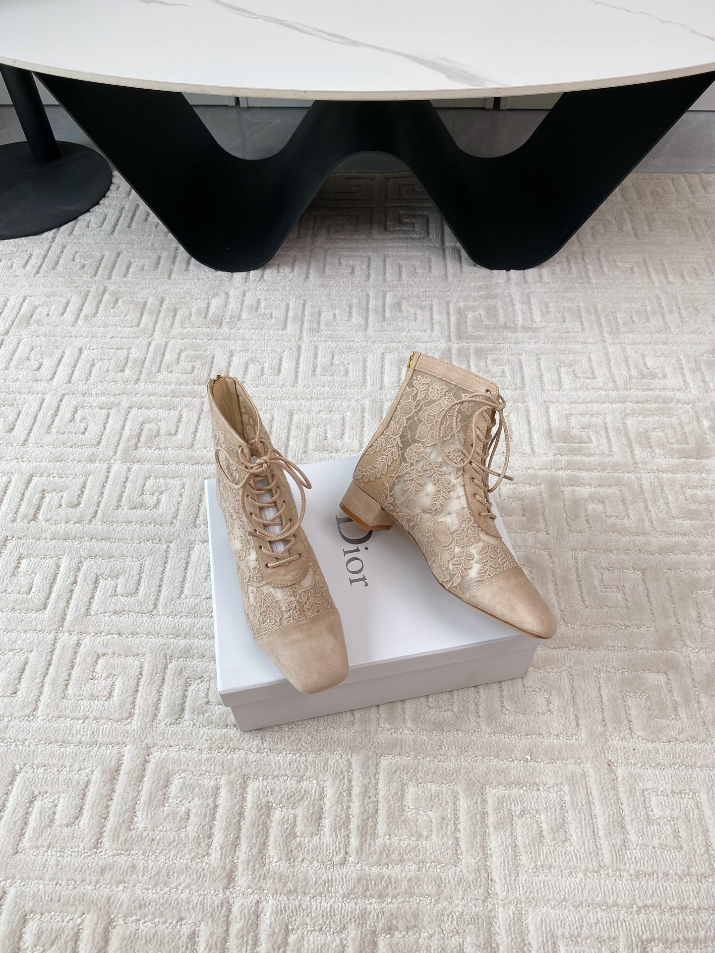CD Naughtily-D Heeled Ankle Boot Beige Transparent Mesh Roses Embroidery And Suede