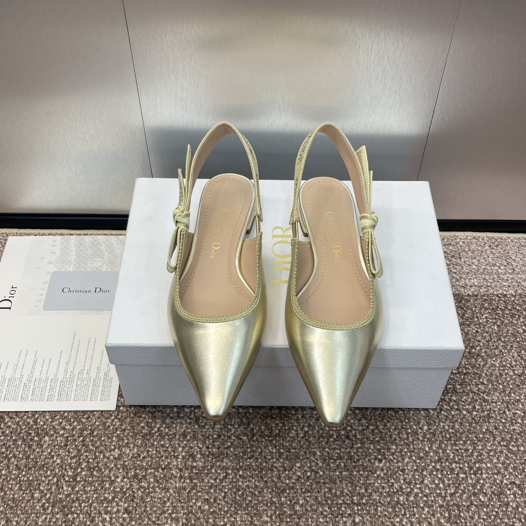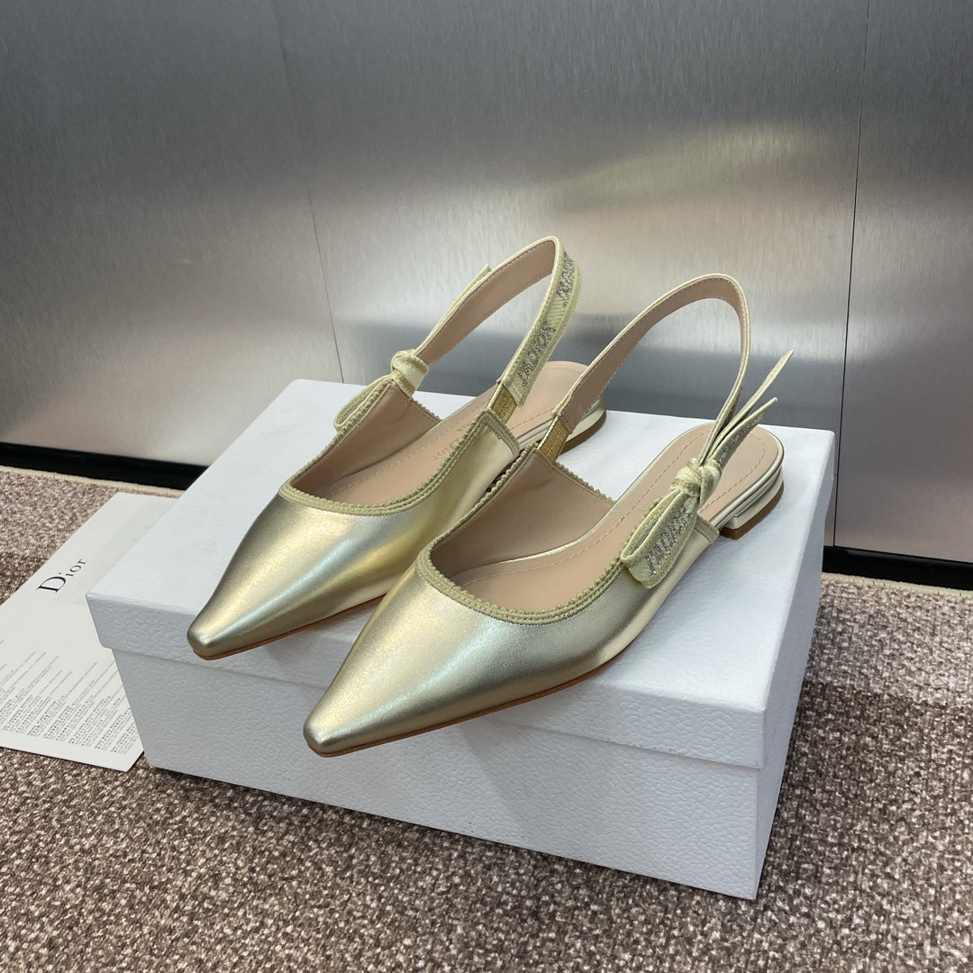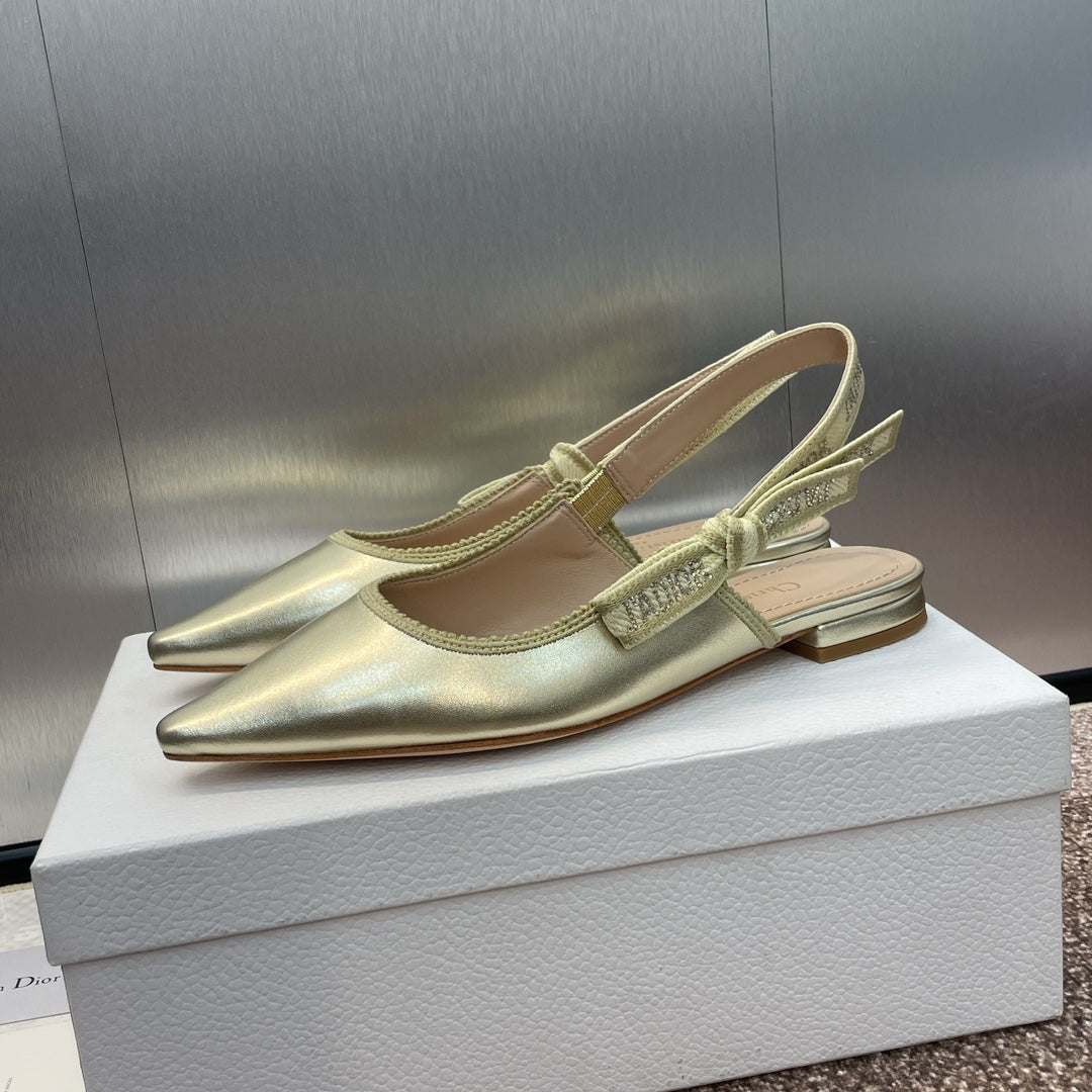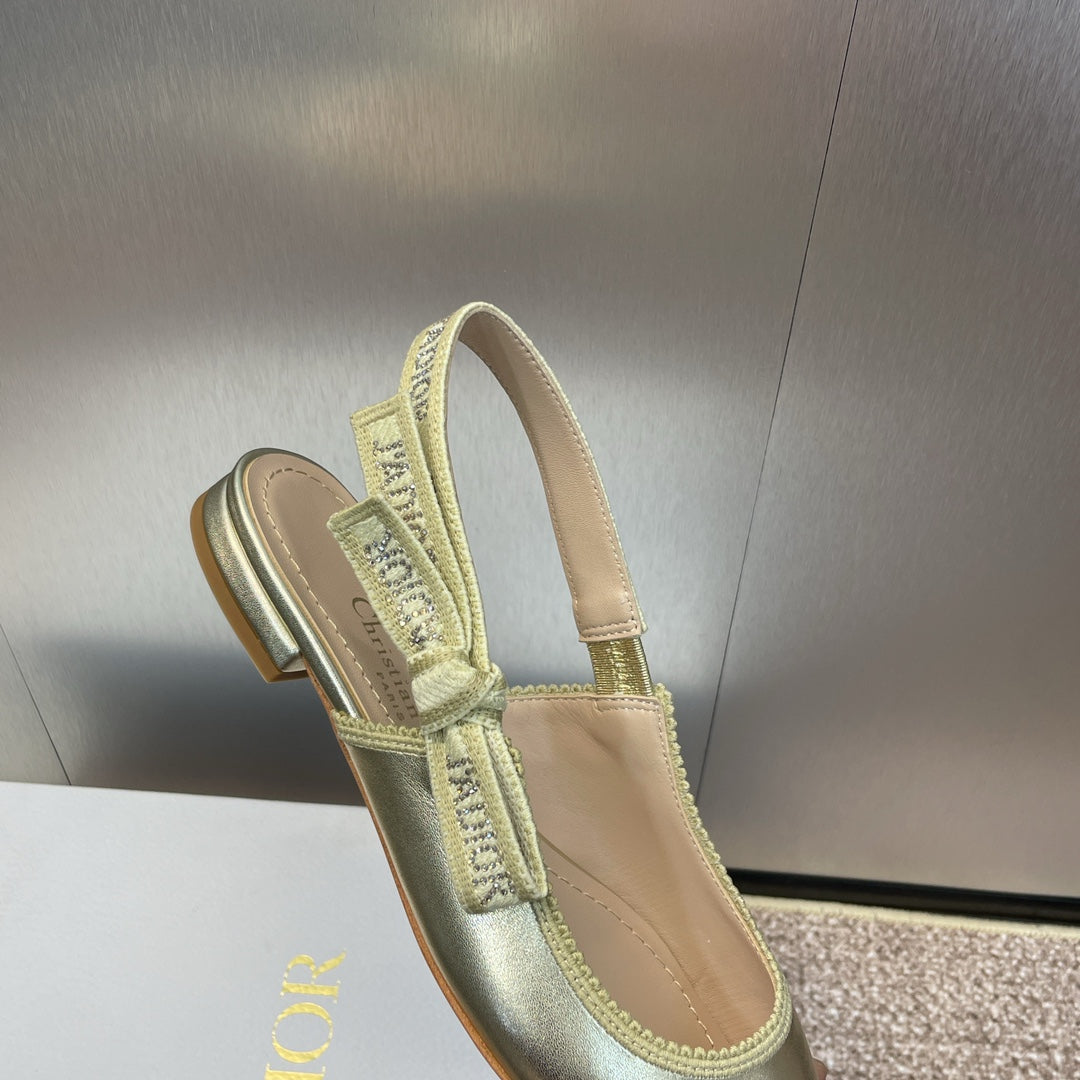 cd slingback flat gold green cakfskin