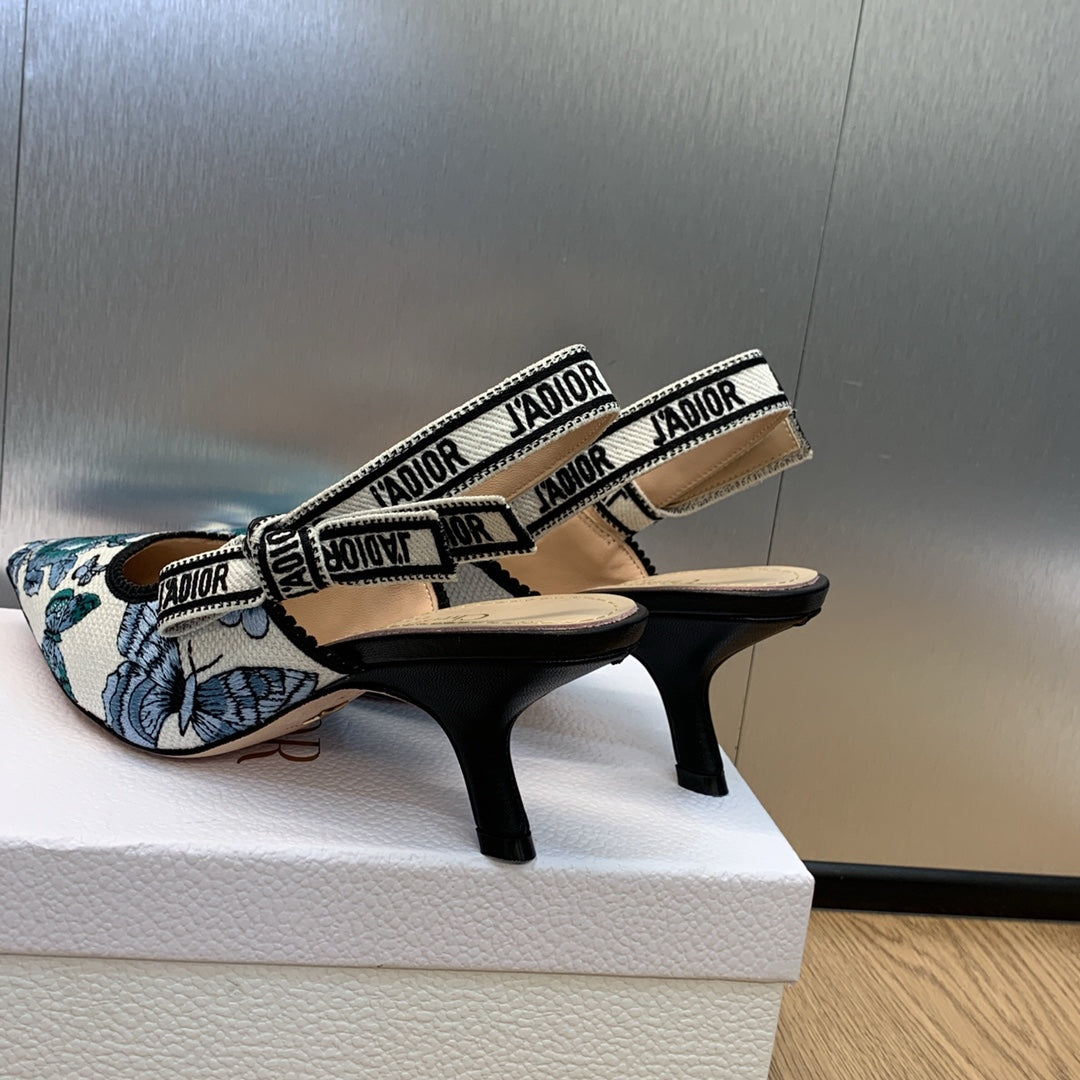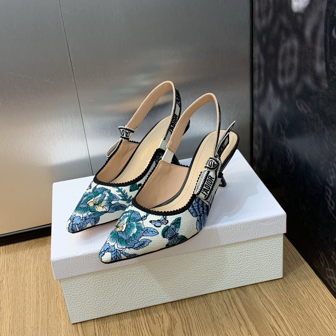 JAdior Slingback Pump 65 Pastel Midnight Blue Multicolor Embroidered Cotton with Toile de Jouy Mexico Motif