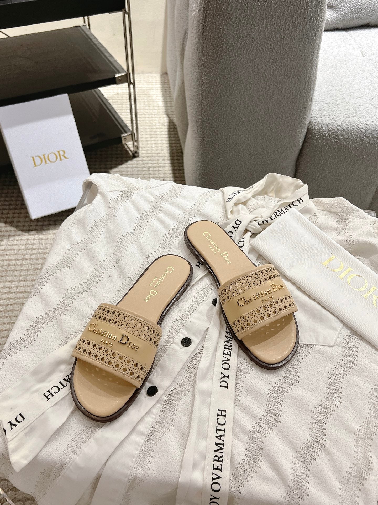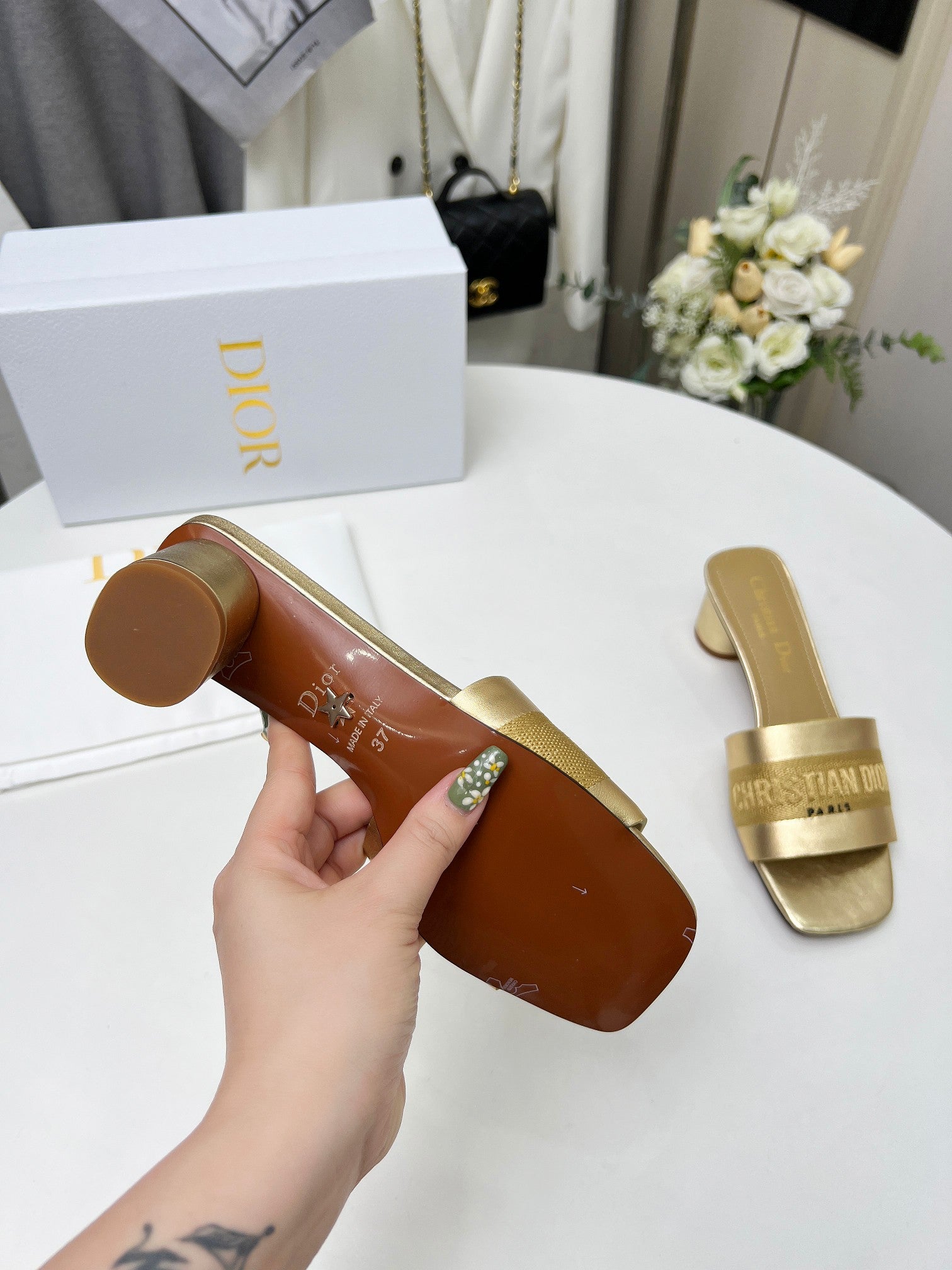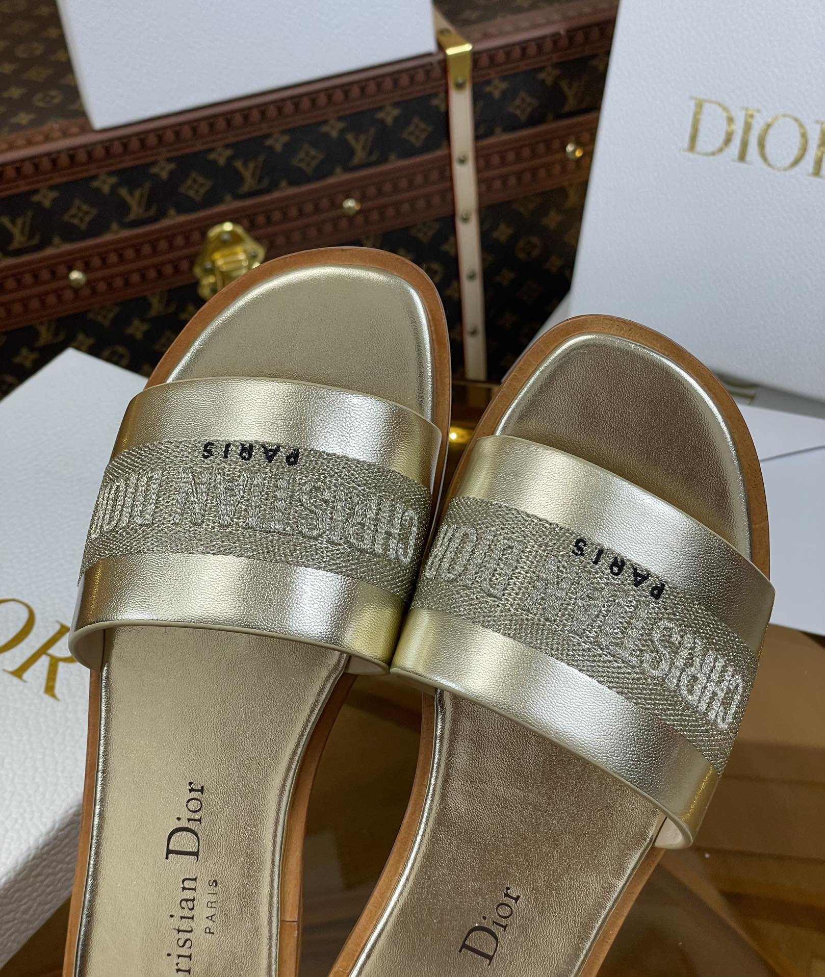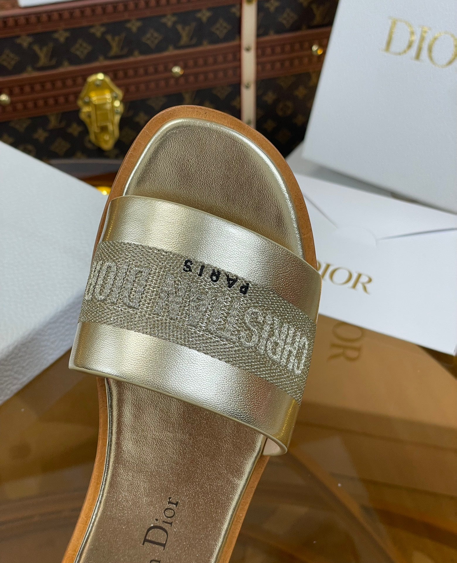 CD Dway Platform Slide Beige Brown Fabric with Lambskin 242442