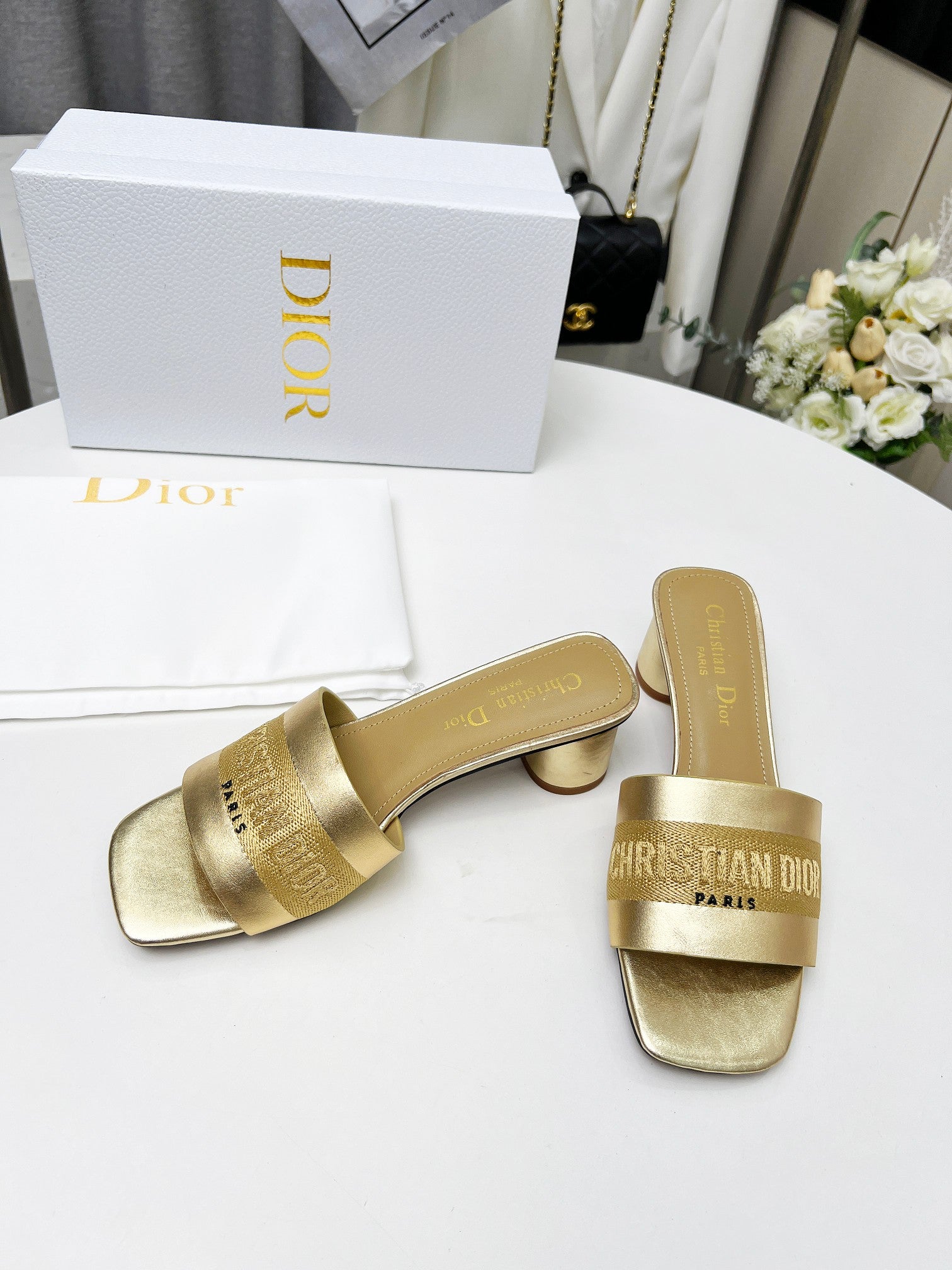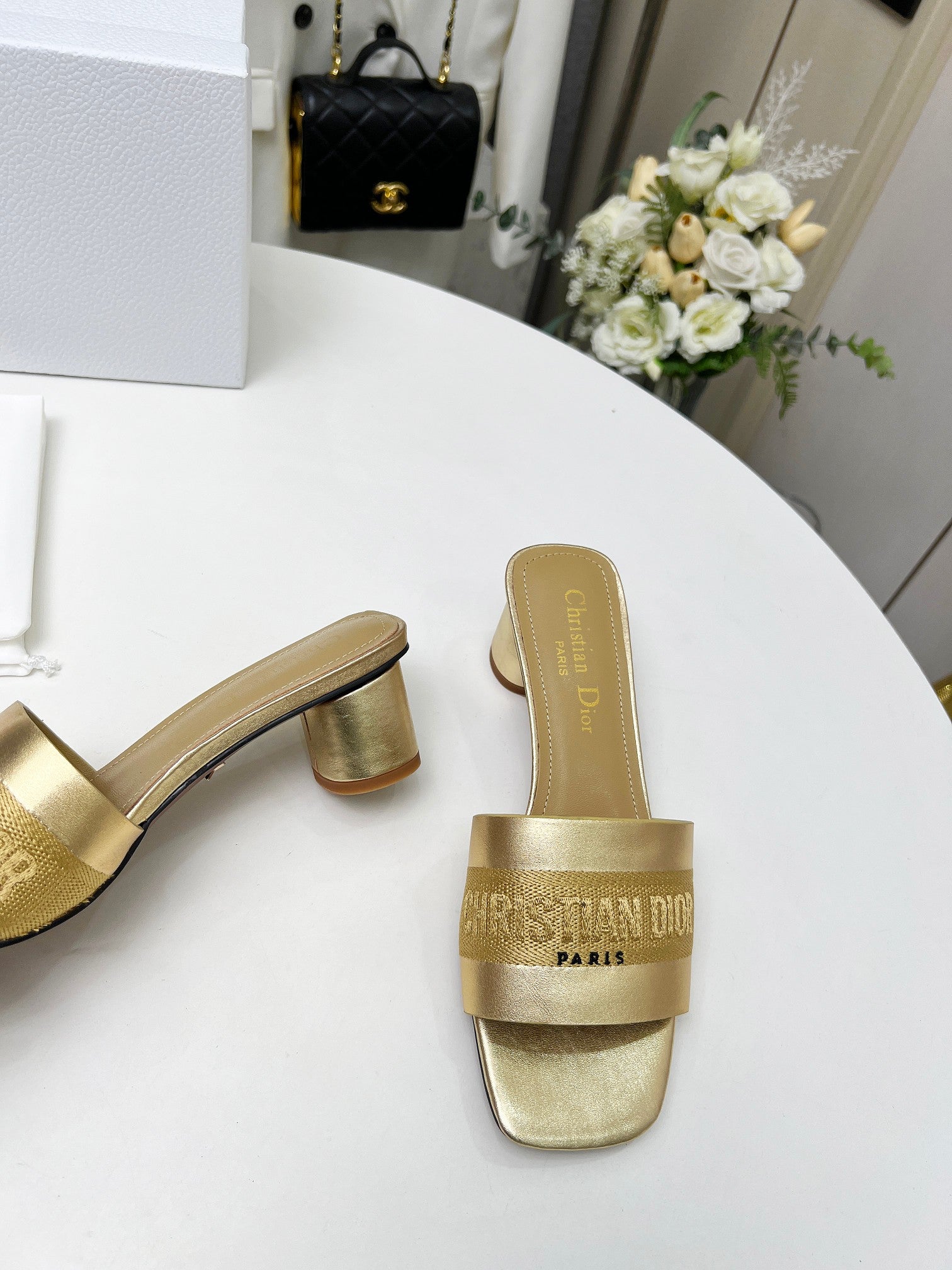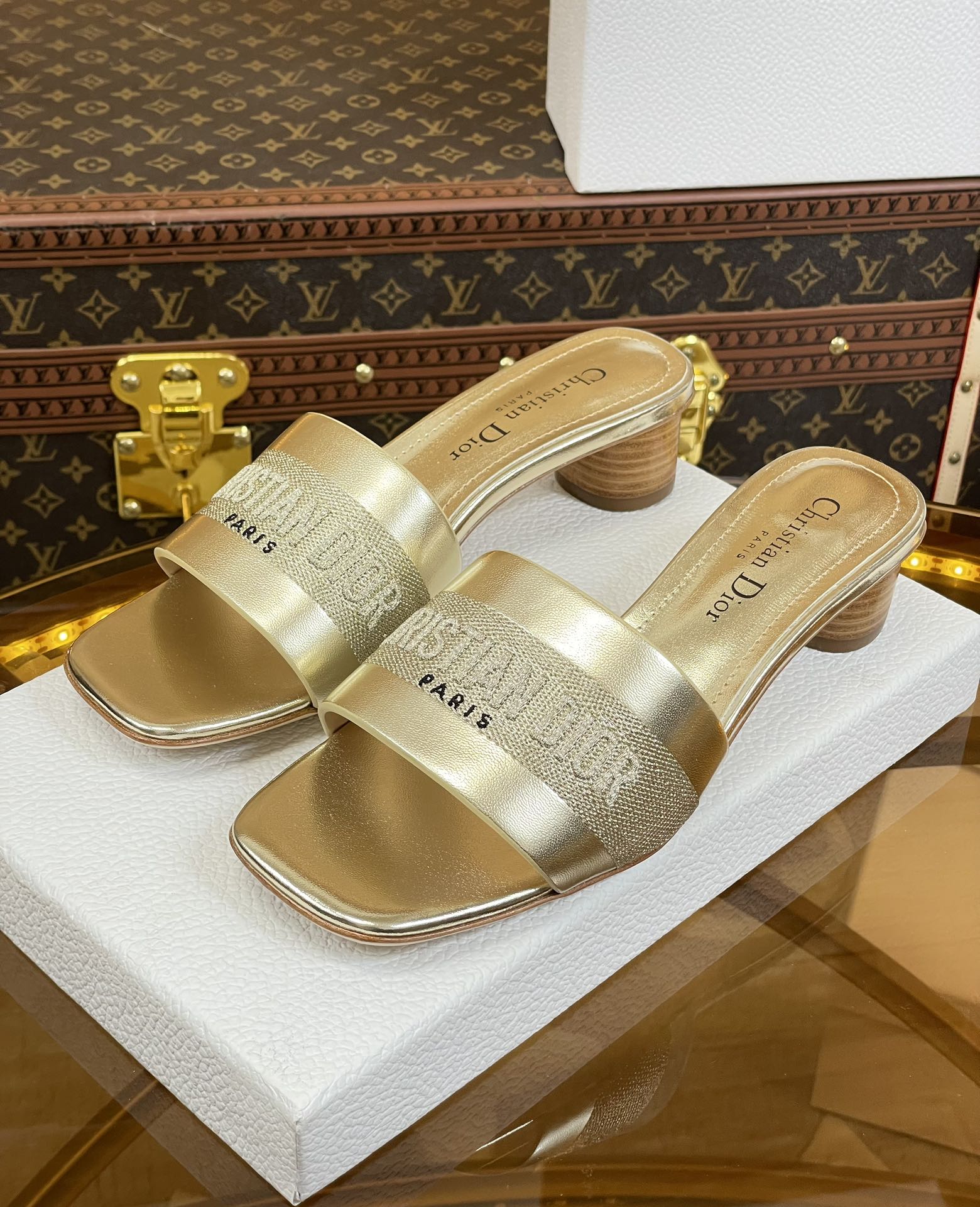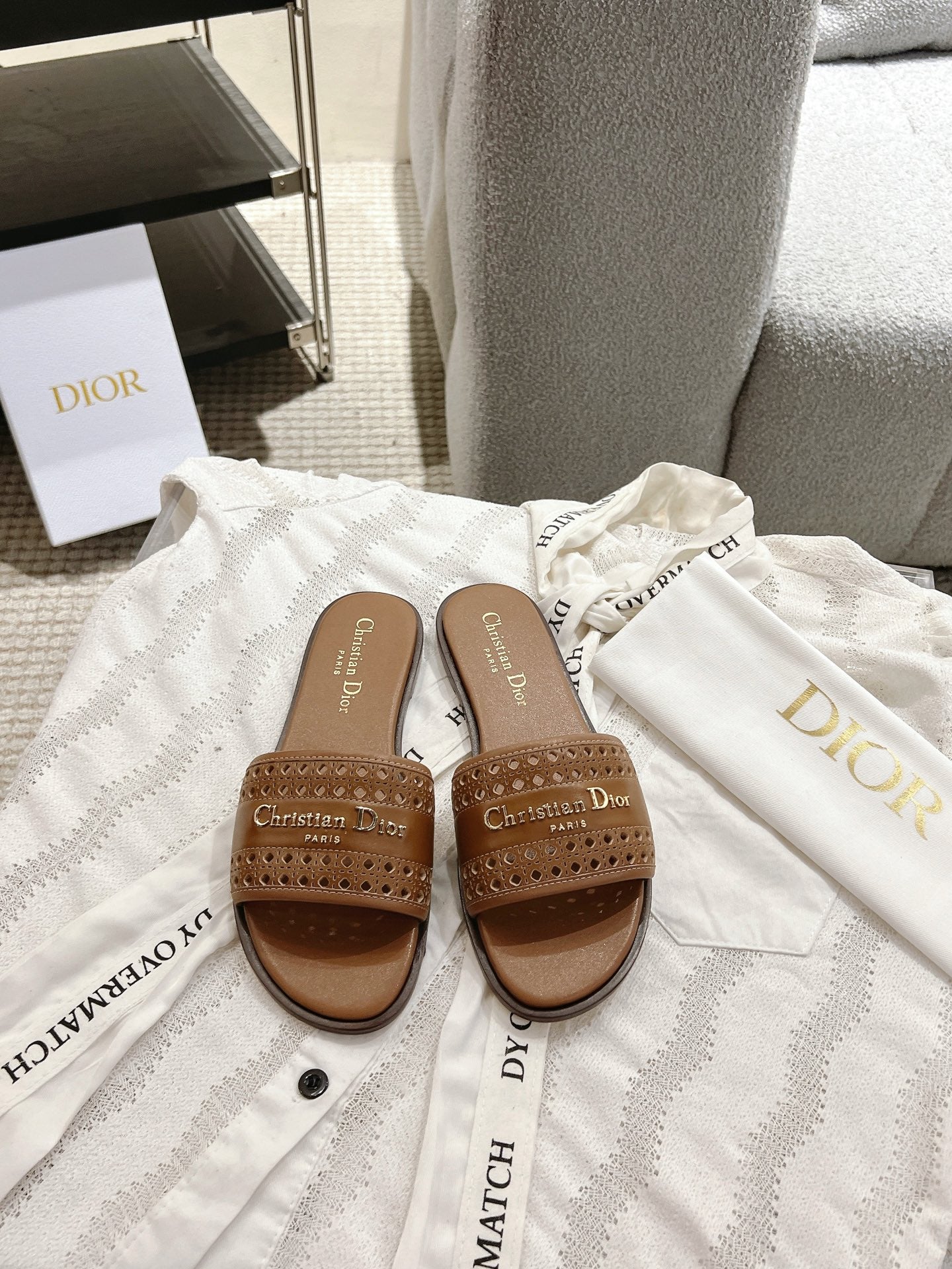 CD Dway Platform Slide Beige Brown Fabric with Lambskin 242442