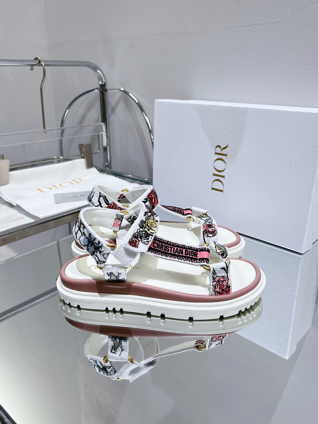 Dior Sandal Pink mix White Canvas Sheepskin 174103