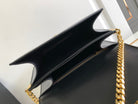 - Color: BLack leather, Gold hardware