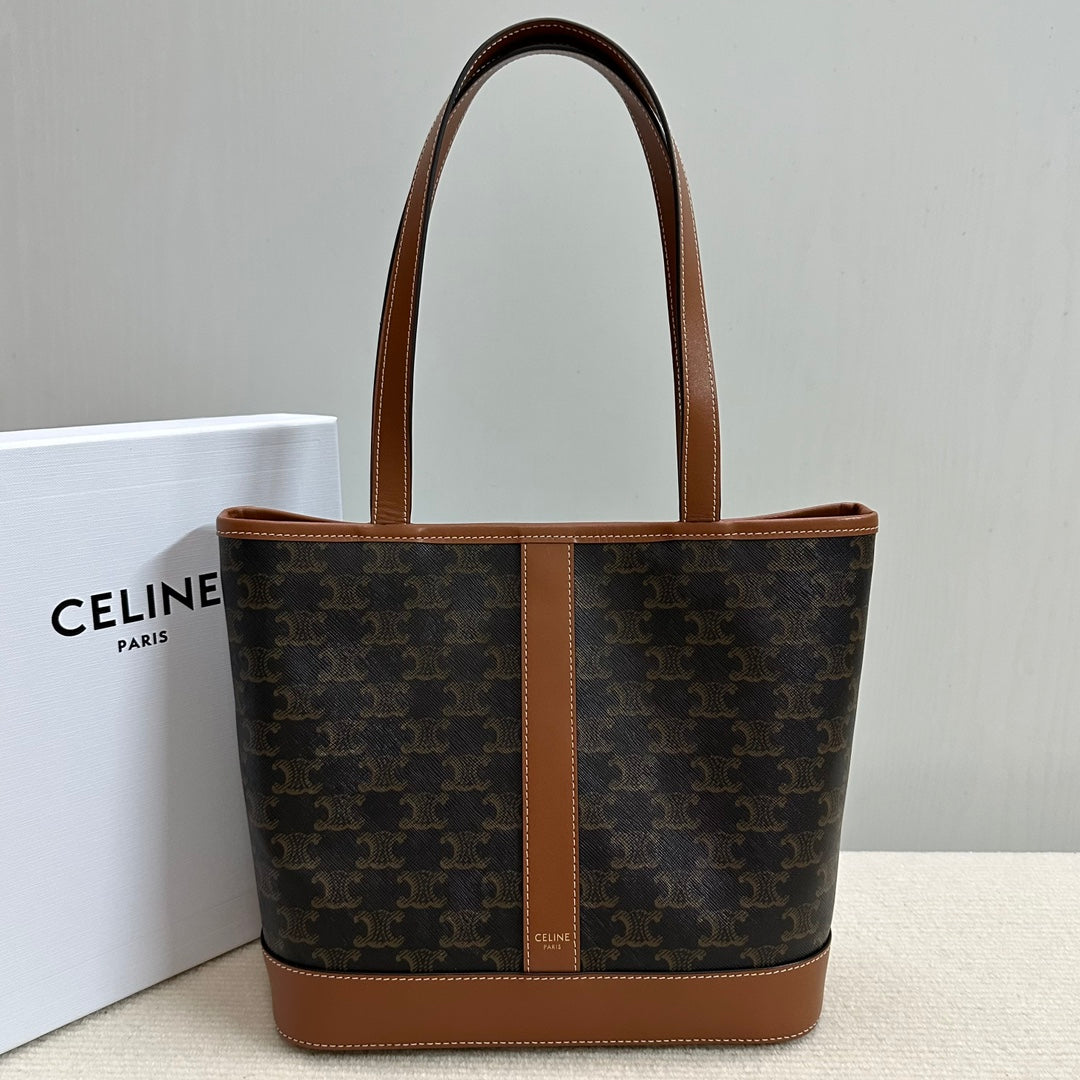 SMALL CABAS TRIOMPHE CANVAS 26.5 TAN CALFSKIN