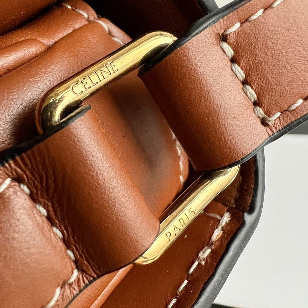 Celine Teen Supple Classic Panier 22cm Brown Calfskin Beige Raffia