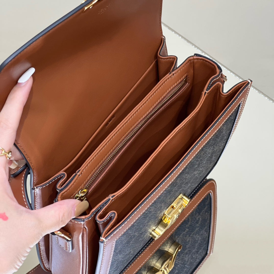Celine Ava Bag 23cm Triomphe Canvas Brown Calfskin