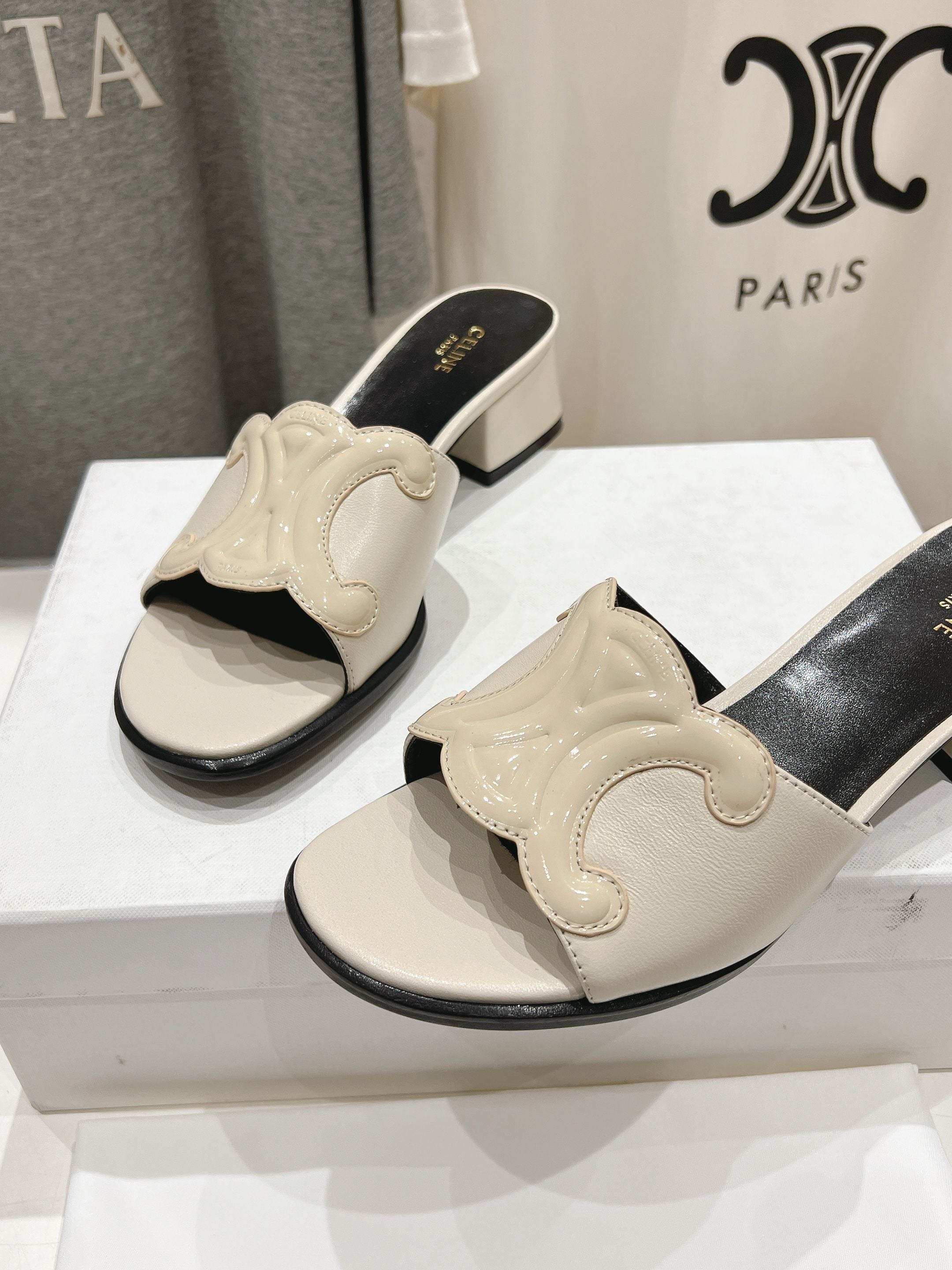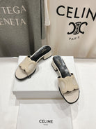 CELINE 25C CLEMENCE MULE WHITE SHEEPSKIN 236749