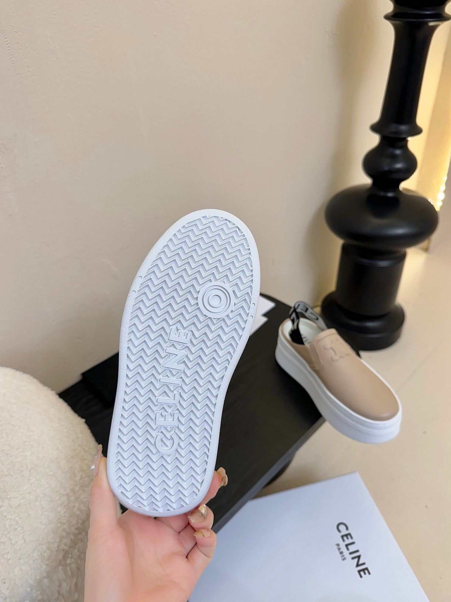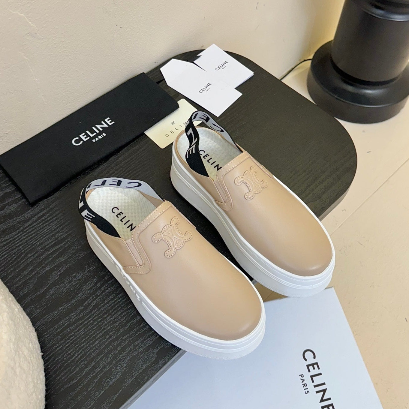 CELINE Block Wedge Mule Cream Calfskin 235719