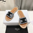 LYMPIA MULE IN TRIOMPHE JACQUARD WOOLLEN FABRIC BLACK CARO