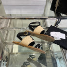 LYMPIAR FLAT STRAP SANDAL IN RAFFIA CALFSKIN BLACK BEIGE