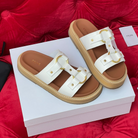 Sandal Flat White Brown Canvas