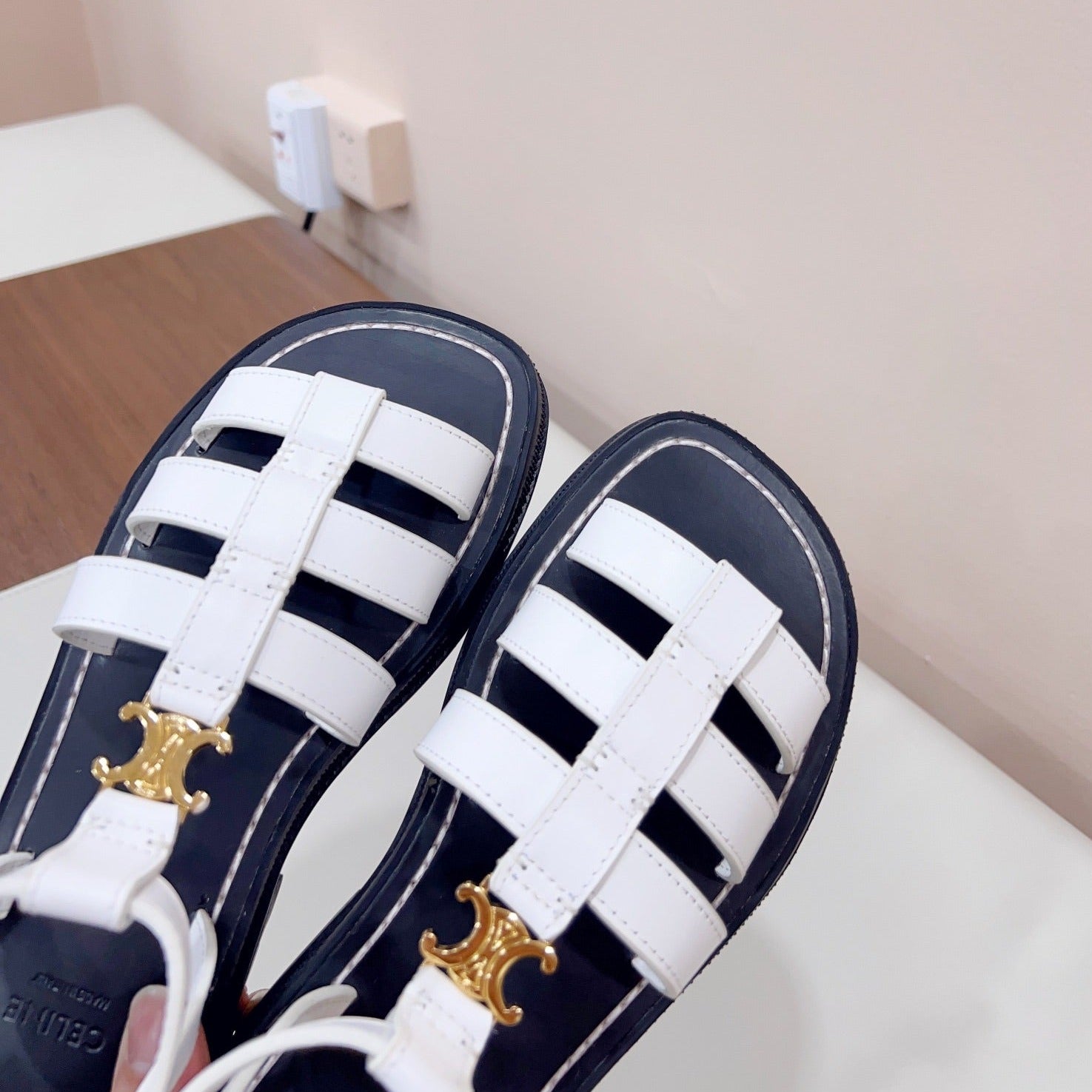 SANDALS FLAT SHOES WHITE CARAMEL BROWN