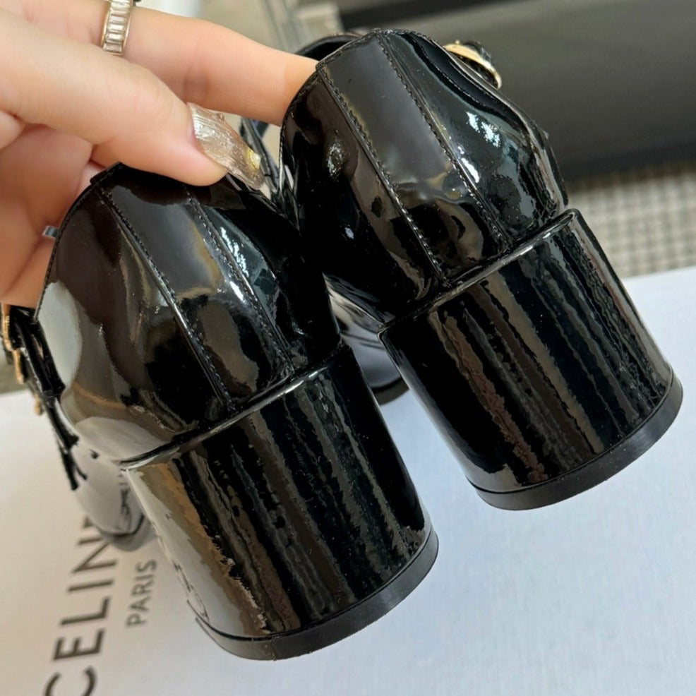 WOMEN'S HIGH HEELS WITH ROUND TOE GLOSSY BLACK SPECIFIC COWHIDE